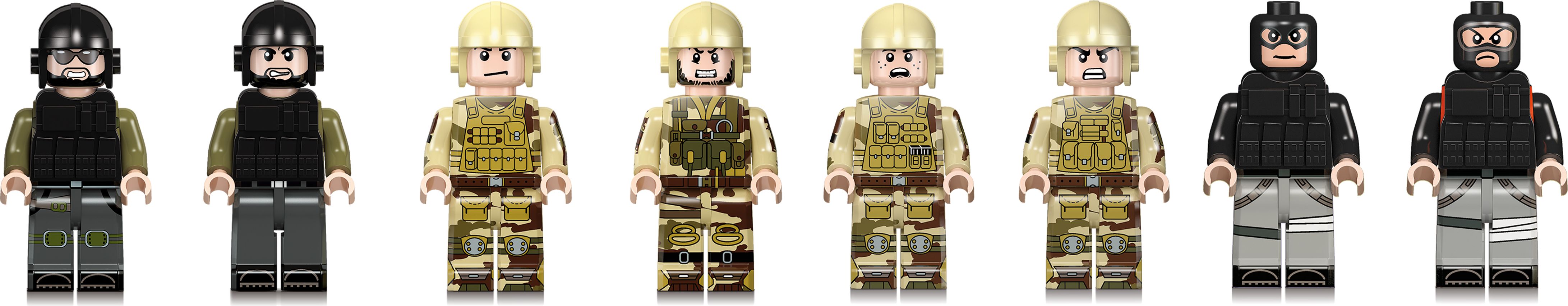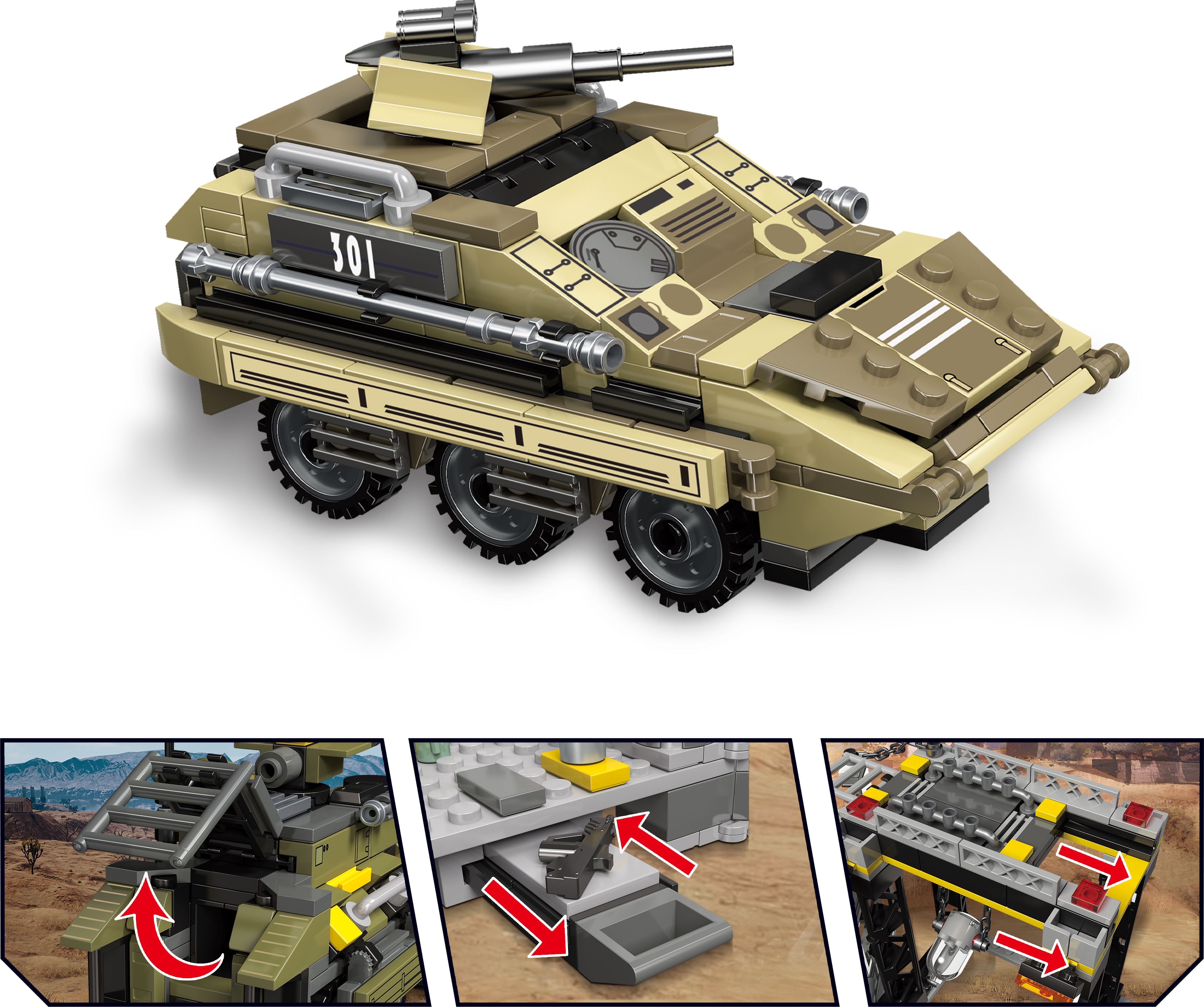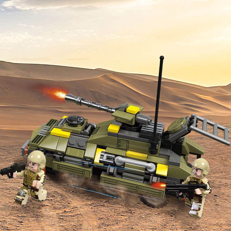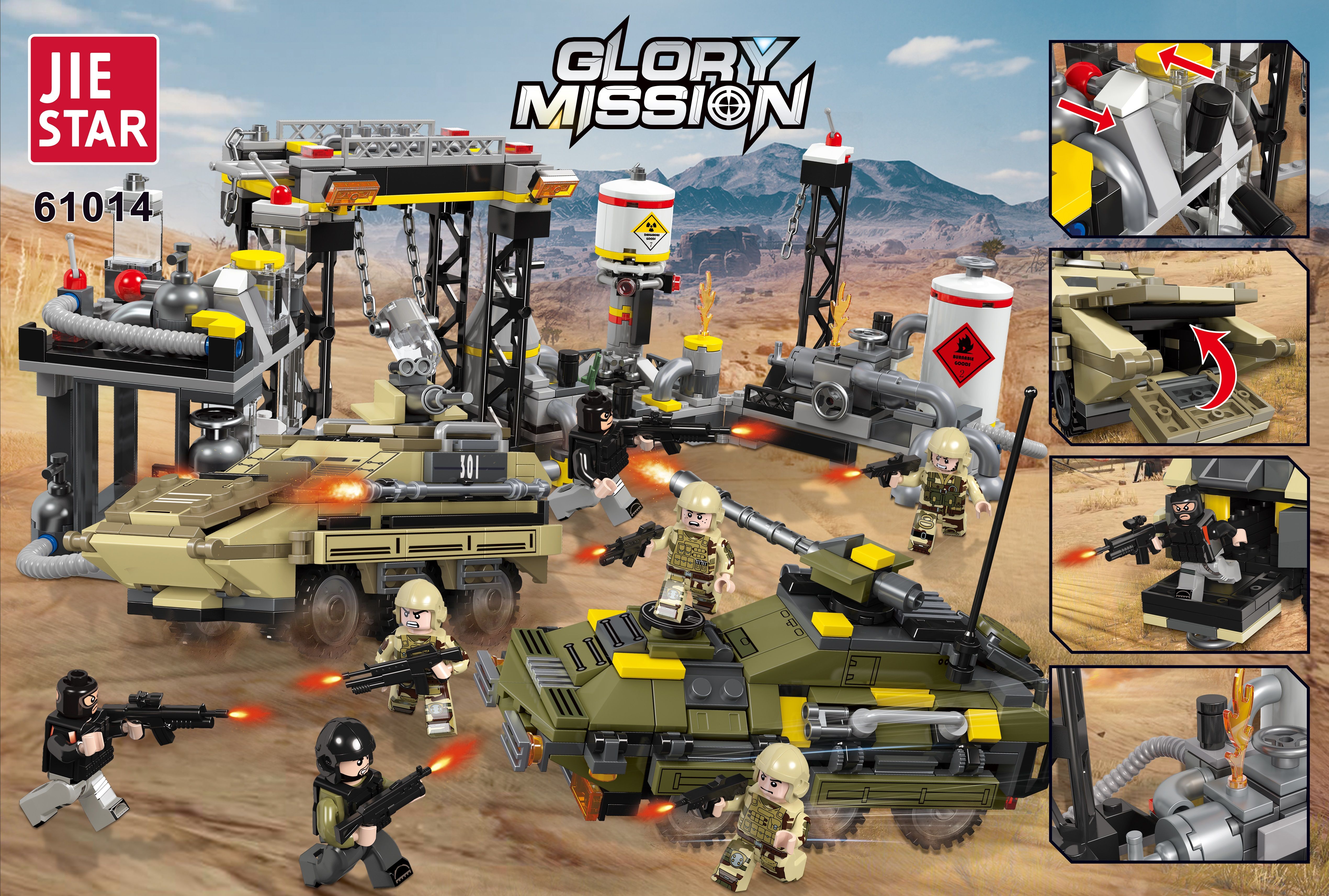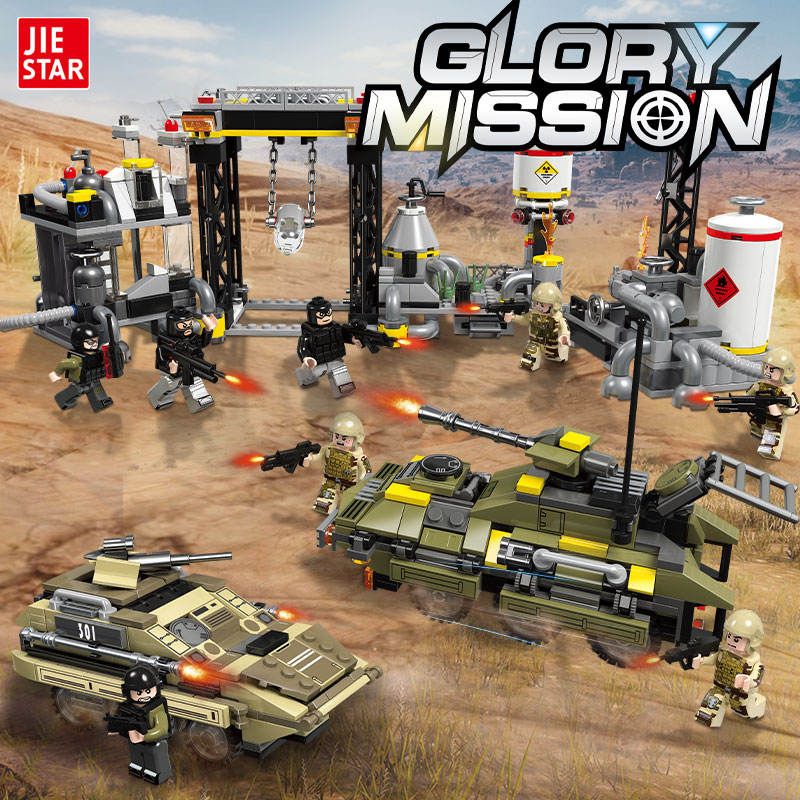 Конструктор JIESTAR включает в себя 966 деталей, включая фигурки, необходимые детали для постройки химического завода и бронетранспортеров