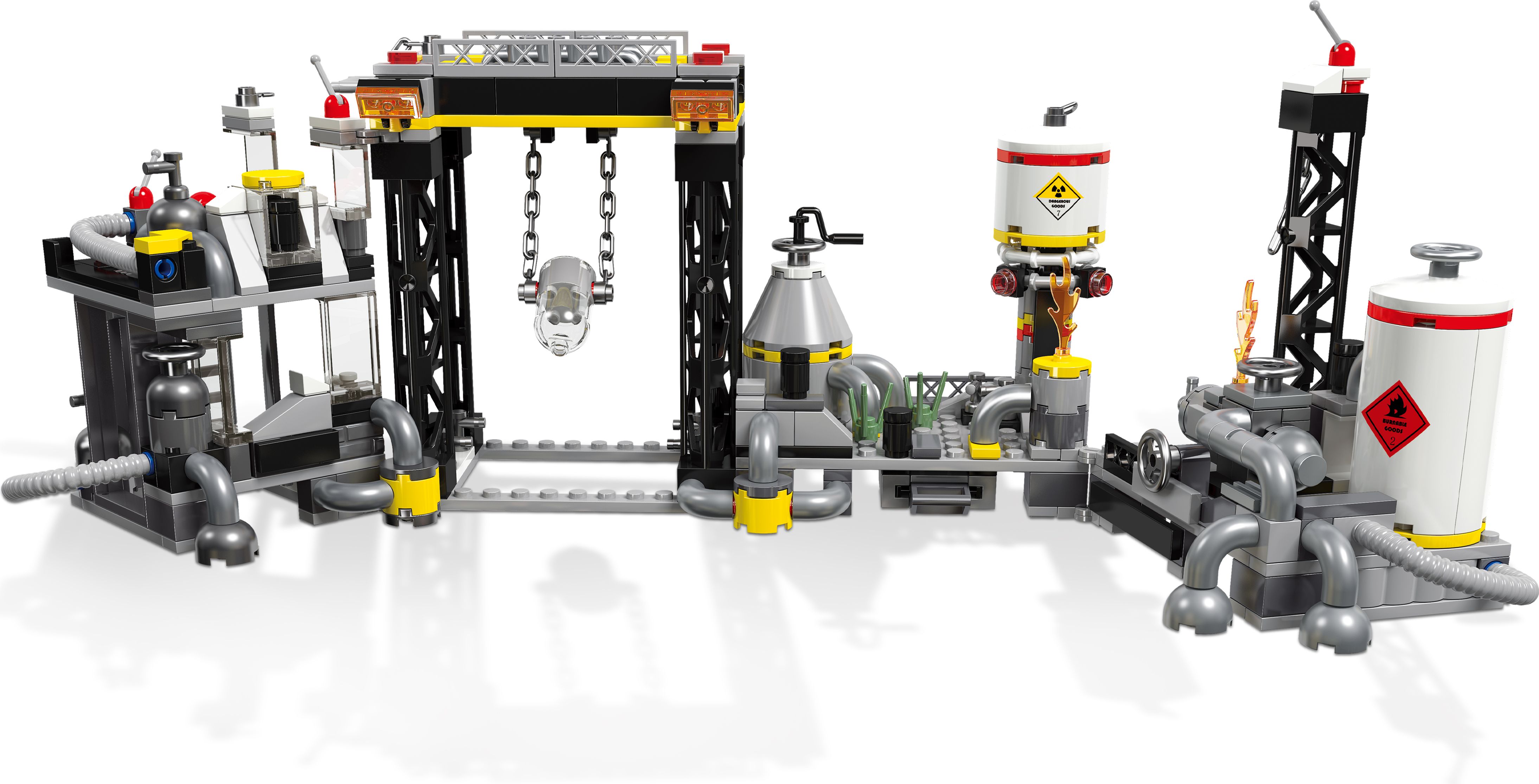 В игре с этим набором ребенок окажется в ситуации, где враги захватили химический завод и угрожают миру страшной катастрофой