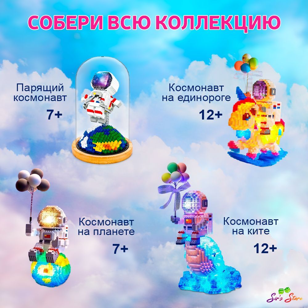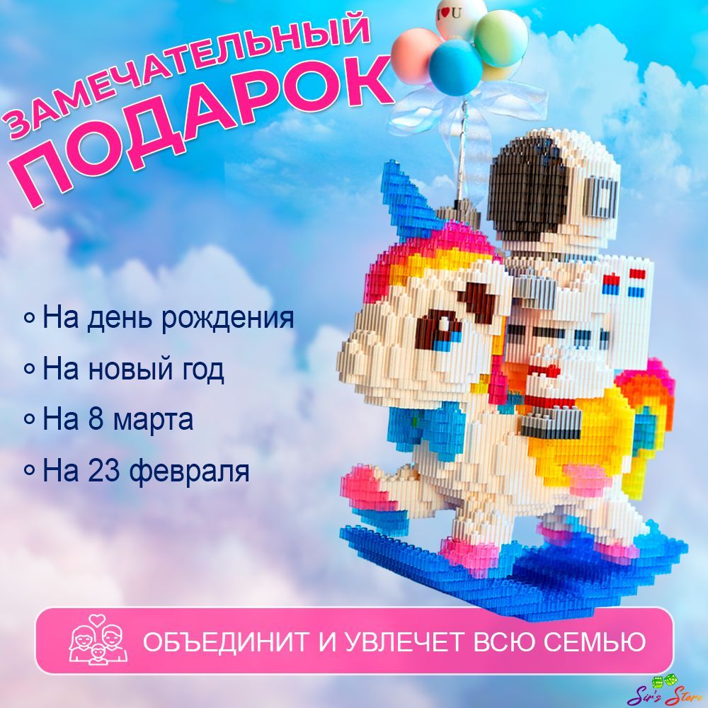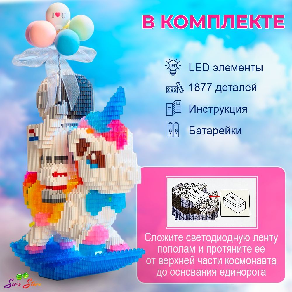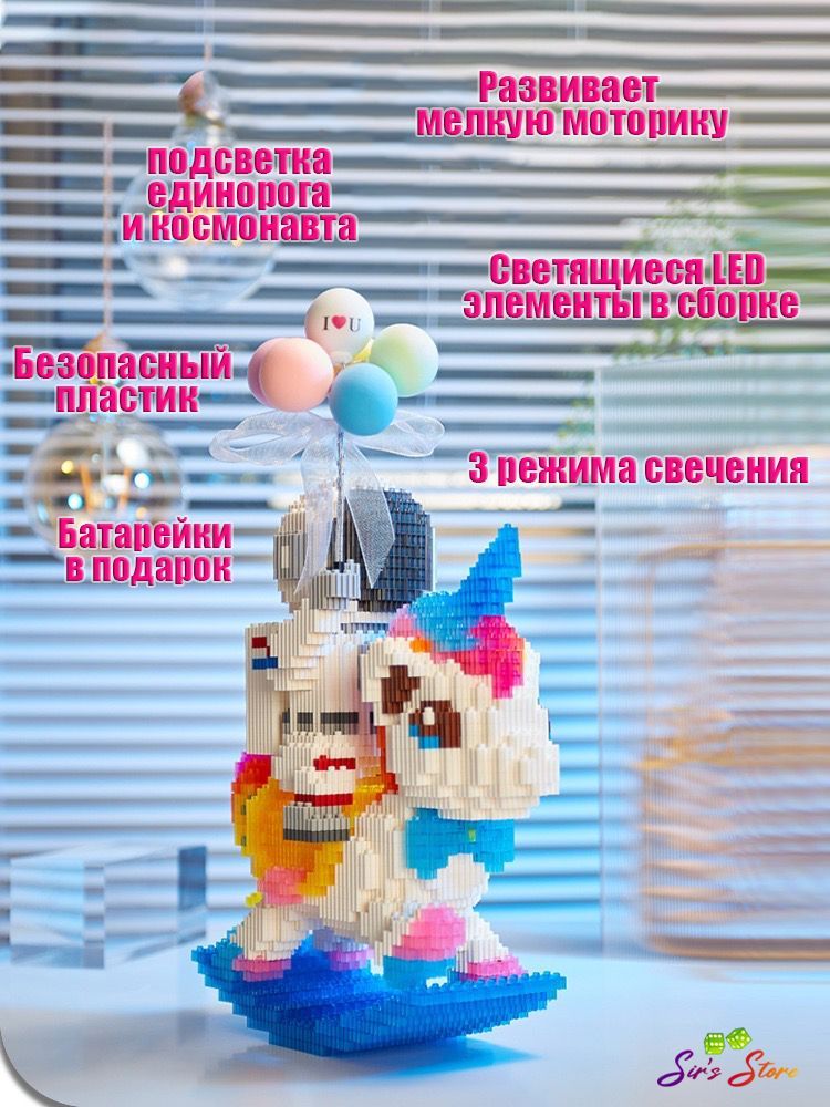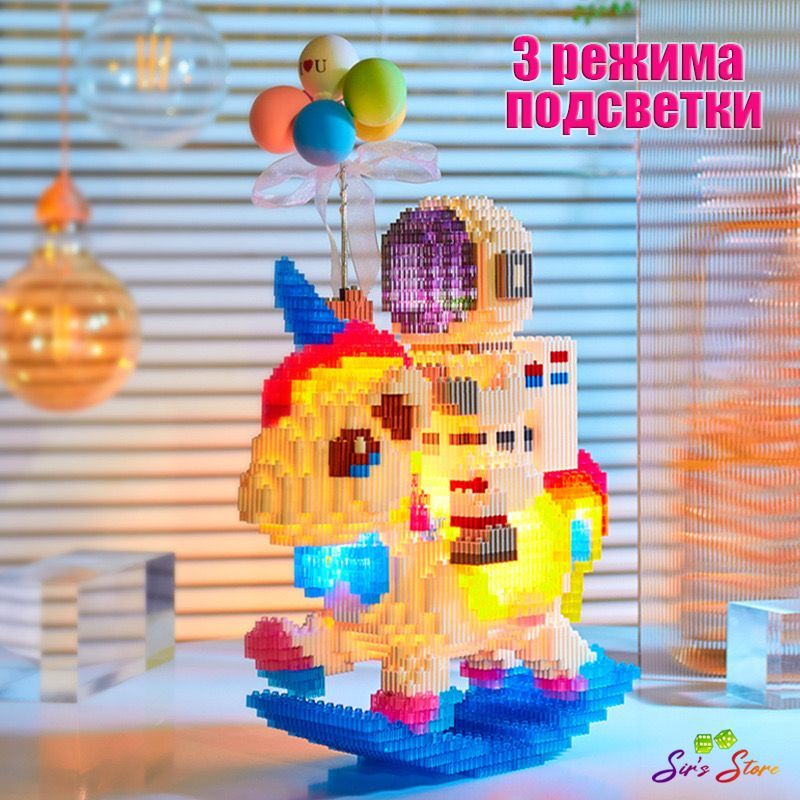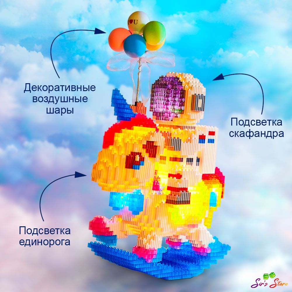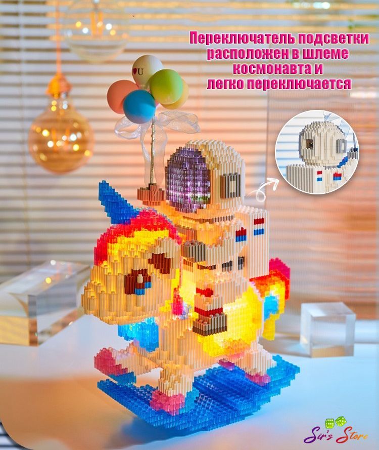 Конструктор "Космонавт на единороге" с подсветкой для мальчика, для девочки и для взрослых
