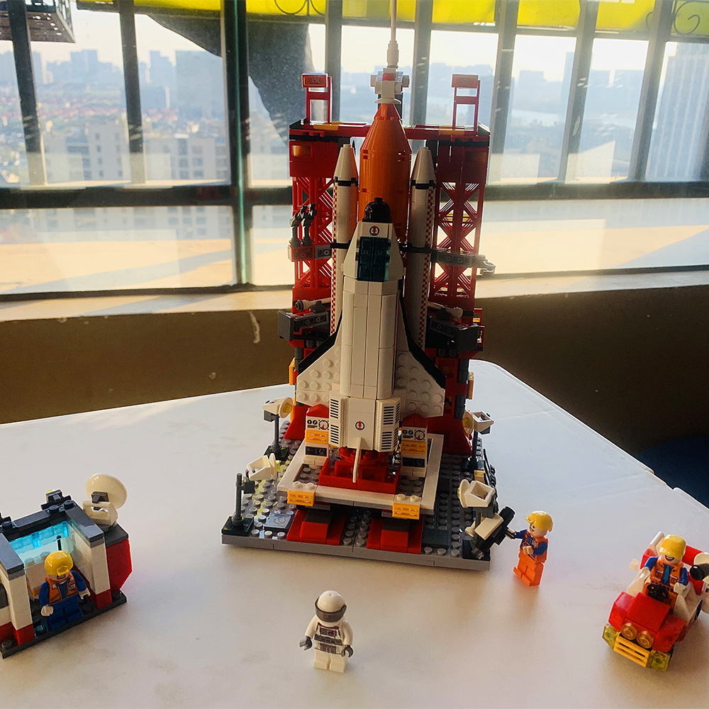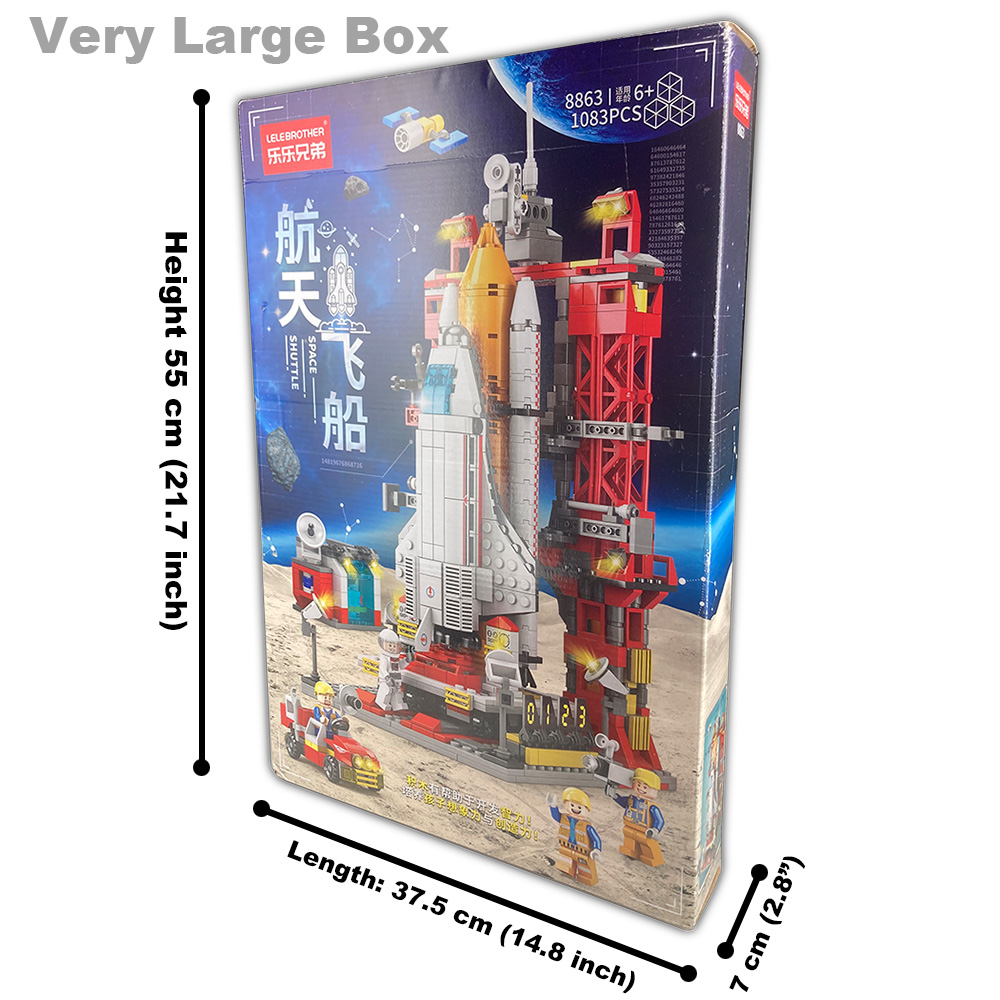 Это кирпич от LeLe Brother. Большой размер; Комплект с космическим челноком из 1083 кирпича. Размер около 45,5x21x21 см, когда он собран. Это занимает около 2 - 3 часов. Очень хорошая цена и игрушка хорошего качества. Хороший подарок для детей.