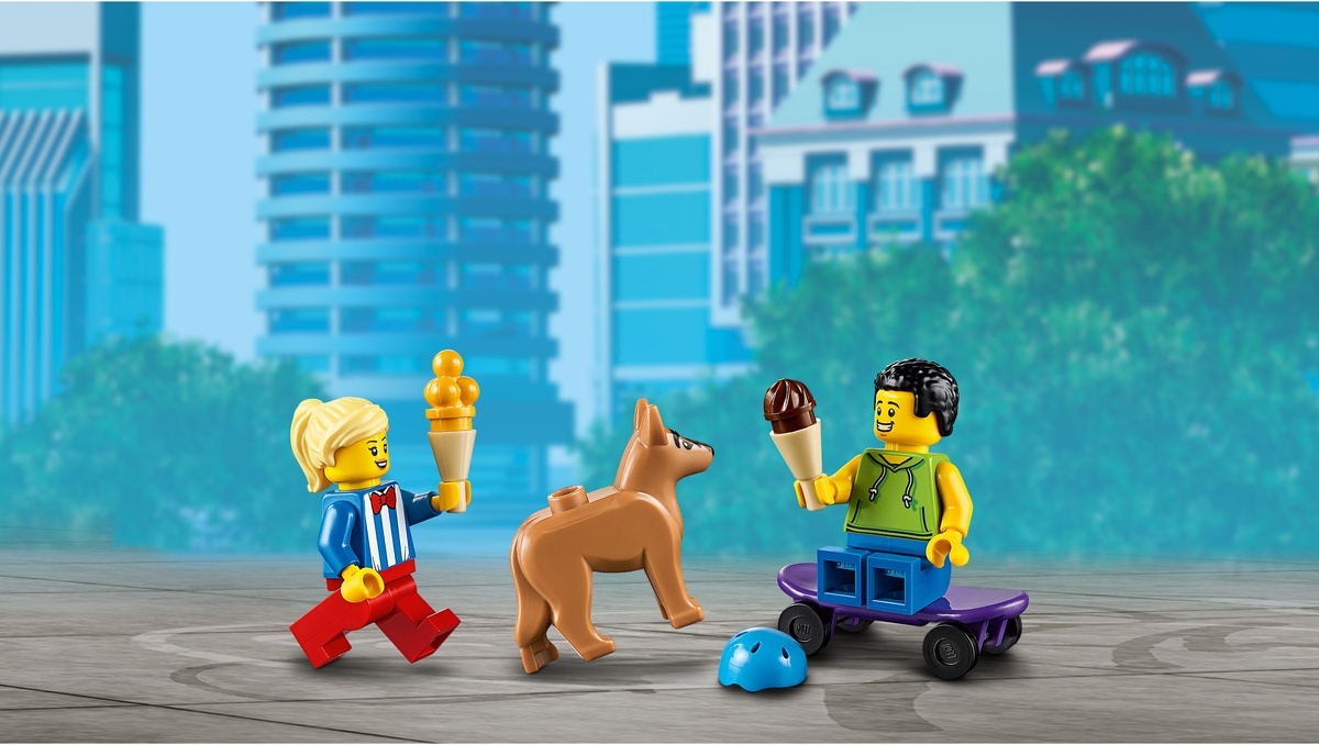 Описание: Конструктор LEGO City Great Vehicles 60253 «Грузовик мороженщика» - настоящая мечта всех детей, которые обожают сладкое прохладное лакомство! Теперь они станут обладателями целой машины с любимыми сладостями и смогут продавать их всем персонажам наборов LEGO. Помимо фургона с мороженым, тут также есть скейтбордист, который выполняет головокружительные трюки на своей доске. А после того как он покончит с экстримом, придет время подкрепиться, выбрав рожок или эскимо. Тогда ребенок сможет помочь игрушечному владельцу грузовика выполнить свою работу. Поскольку в наборе представлены две фигурки, дети могут играть вдвоем.