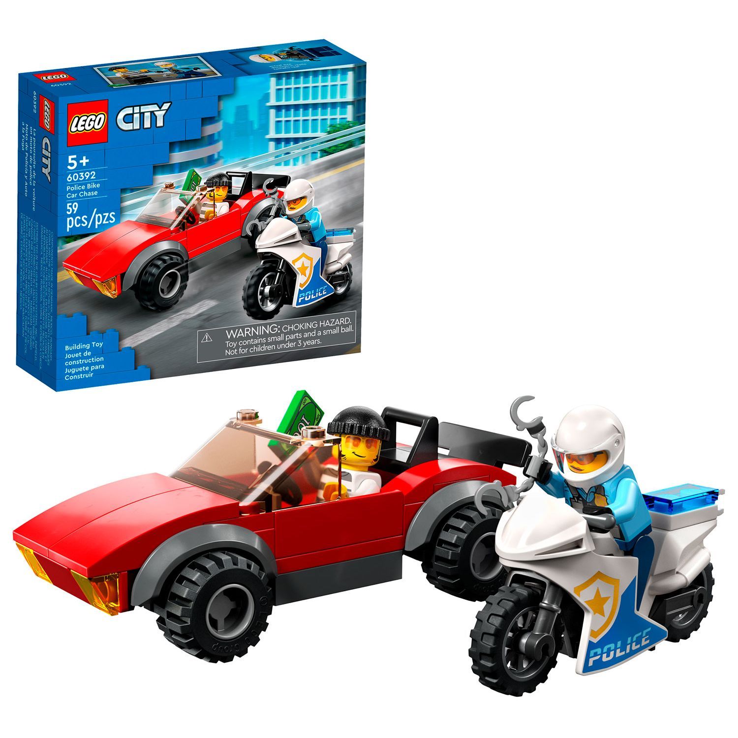Описание: Мобилизуйте воображение детей с помощью этого остросюжетного игрового набора. Конструктор LEGO City Police Bike Car Chase (60392) поставляется с игрушечным мотоциклом police pursuit и спортивной машиной crook's getaway. Просто добавьте минифигурки полицейского и мошенника, игрушечную банкноту и каплю воображения, чтобы часами ловить мошенников. Этот набор из 5+ включает в себя пошаговое печатное руководство по строительству и приложение LEGO Builder - интерактивное руководство по строительству, которое делает строительство еще более увлекательным, с интуитивно понятными инструментами масштабирования и поворота, которые позволяют детям визуализировать модели со всех сторон во время сборки. Игровые наборы LEGO City помещают детей в центр действия, где они сами создают сюжетные линии, благодаря многофункциональным зданиям, крутым транспортным средствам и вдохновляющим персонажам, которые стимулируют творческую, неограниченную ролевую игру. Игрушка "Полицейская погоня" для детей в возрасте от 5 лет и старше – с этим игровым набором LEGO City Police Bike Car Chase (60392) вас ждут часы веселых приключений по поимке преступников. Что в коробке? – Включает в себя все необходимое для сборки игрушечного мотоцикла полицейского преследования и спортивного автомобиля crook's getaway, а также минифигурок полицейского гонщика и мошенника Особенности и функции – Дети могут прикрепить игрушечную минифигурку наручниками к полицейскому мотоциклу Веселый подарок на день рождения или на любой другой день - этот игровой набор LEGO City police предназначен для детей в возрасте от 5 лет и старше, которые любят классные игрушки для творческих ролевых игр Размеры – Игрушечный спортивный автомобиль имеет размеры более 4 см в высоту, 10 см в длину и 5 см в ширину Забавные аксессуары LEGO – включают игрушечную банкноту и наручники Включает печатные и цифровые инструкции по сборке – дети могут увеличивать, поворачивать и визуализировать готовые модели по мере их сборки с помощью приложения LEGO Builder для смартфонов и планшетов Исследуйте мир с помощью игры – игровые наборы LEGO City предназначены для развития физических навыков и уверенности в себе с помощью творческой игры Гарантированное качество – все компоненты LEGO соответствуют строгим отраслевым стандартам, гарантирующим их согласованность, совместимость и удовольствие от сборки: так было с 1958 года Безопасность превыше всего – кубики и детали LEGO соответствуют строгим мировым стандартам безопасности