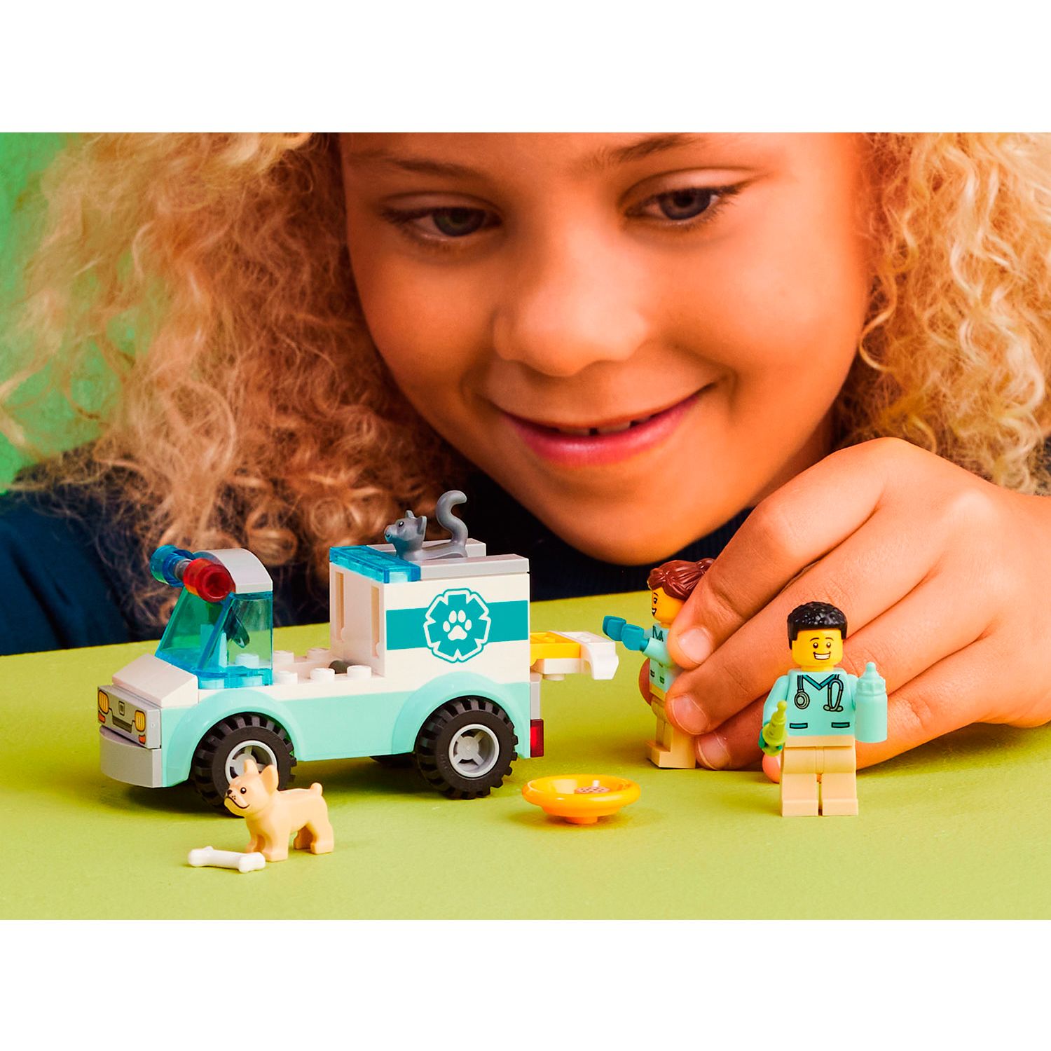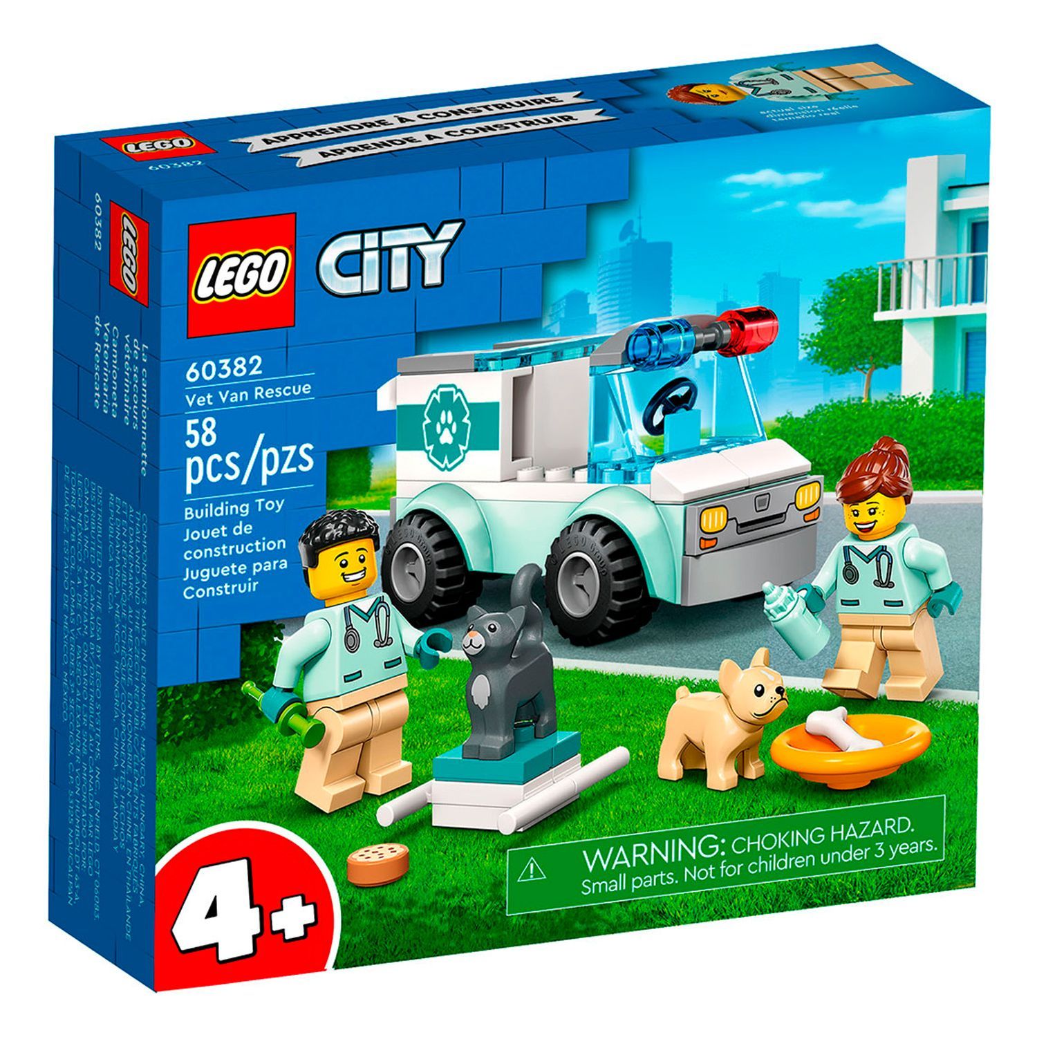 Описание: Начинающим ветеринарам и любителям животных в возрасте от 4 лет понравится этот конструктор LEGO City Vet Van Rescue (60382), включающий игрушечную машину-спасателей со съемными носилками, 2 минифигурки ветеринара, фигурки собак и кошек и забавные аксессуары для многочасовых игр по уходу за домашними животными. Этот игровой набор для 4+ поставляется с элементом LEGO Starter Brick, наглядными инструкциями и приложением LEGO Builder – цифровым помощником в строительстве с интуитивно понятными инструментами масштабирования и поворота, которые позволяют детям визуализировать готовую модель со всех сторон во время сборки. Наборы LEGO City помогают детям развить уверенность в себе и ключевые жизненные навыки благодаря реалистичным игрушкам и забавным персонажам, которые вдохновляют на неограниченную игру воображения. Набор игрушек для ухода за животными для детей в возрасте от 4 лет - начинающим ветеринарам и любителям животных понравится этот конструктор LEGO City Vet Van Rescue (60382) "Играй и учись". Что в коробке? – Все, что нужно детям для создания игрушечной машины для спасения животных, а также 2 минифигурки ветеринара, фигурки собак и кошек и забавные аксессуары Игра с воображением – дети могут помочь больным питомцам уложить их на носилки, прежде чем поместить минифигурки ветеринара в кабину водителя и отправиться в ближайшую ветеринарную клинику. Забавный подарок в любое время – этот игровой набор на тему ветеринара можно подарить на день рождения, праздник или на любой другой день детям в возрасте от 4 лет и старше Размеры – Размеры ветеринарного фургона составляют более 5 см в высоту, 9 см в длину и 5 см в ширину Набор включает игрушечный шприц, детскую бутылочку, собачью миску и кость Руководство для юных строителей – Этот набор для 4+ включает в себя элемент LEGO Starter Brick, простое иллюстрированное руководство по строительству и цифровое наставничество через приложение LEGO Builder. Конструктор "Играй и учись" - наборы LEGO City помогают детям развить уверенность в себе и ключевые жизненные навыки с помощью забавных игрушек и персонажей, которые вдохновляют на открытую игру с воображением Гарантированное качество – все компоненты LEGO соответствуют строгим отраслевым стандартам, гарантирующим их согласованность, совместимость и удовольствие от сборки: так было с 1958 года Безопасность превыше всего – компоненты LEGO соответствуют строгим мировым стандартам безопасности
