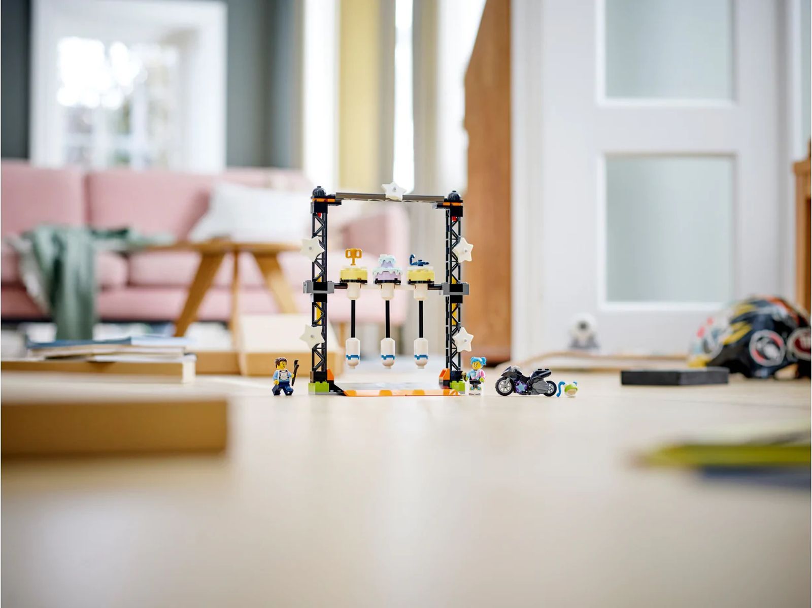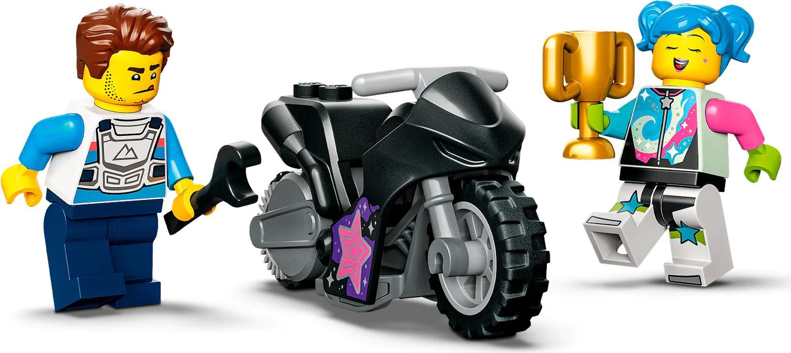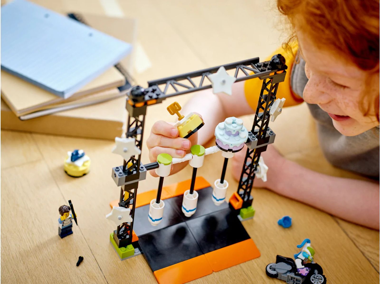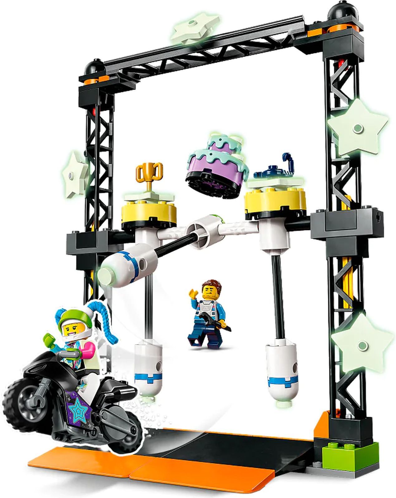 Описание: Детям, которые любят соревноваться, понравится этот игрушечный набор LEGO® City The Knockdown Stunt Challenge (60341) со светящимися в темноте элементами. Дети запускают мотоцикл с маховиком, чтобы врезаться в колонну и выиграть приз. А с двумя популярными персонажами LEGO City TV все готово для увлекательной ролевой игры. Объедините этот набор с другими наборами из серии LEGO City Stuntz, чтобы выполнять больше трюков.