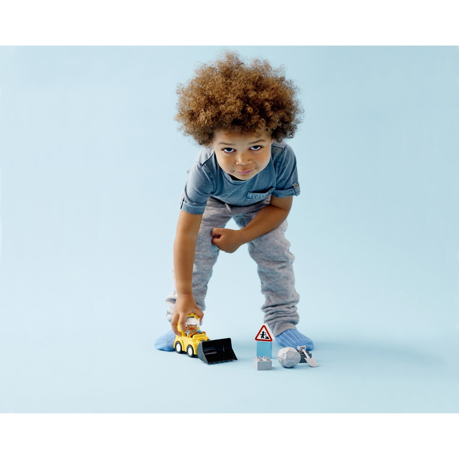 Описание: Для самых юных собирателей, только делающих первые шаги в конструировании, набор LEGO DUPLO Town 10930 «Бульдозер» станет идеальным подарком на день рождения или Новый год. Предназначенный для использования детьми в возрасте от 2-х лет, он прост в сборке: состоит всего из 10 деталей, специально адаптированных под детские ручки. Использование этого конструктора во время игры влияет не только на развитие мелкой моторики ребенка, но и на его творческое мышление. Разыгрывая вместе с ребенком игровые сцены при помощи этого конструктора, вы превращаете увлекательную игру в познавательный процесс. Компактность размера собранного бульдозера позволяет носить его с собой и использовать в качестве игрушки как дома, так и на детской площадке или в детском саду. В наборы LEGO DUPLO Town входят также и другие знакомые ребенку объекты, использование которых поможет разнообразить процесс игры и сделать его более интересным. Конструктор не требует дополнительных элементов при сборке и готов к использованию сразу после распаковки.