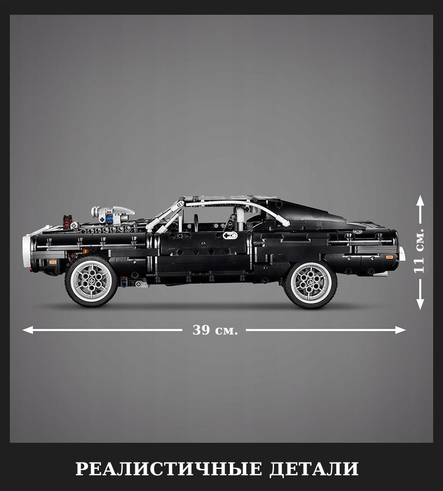 Описание: Что может быть лучше, чем разогнаться на предельной скорости на Dodge Charger, за рулём которого сидит Доминик Торетто из блокбастера «Форсаж»? Рассмотрите поближе двигатель V8, подвижные поршни, систему рулевого управления и даже емкость с закисью азота для максимального ускорения. Если станет слишком жарко, в машине есть огнетушитель. Воссоздавайте знаменитые сцены из фильма и покажите легендарный автомобиль всем друзьям, установив его на подставку на двух колёсах. Длина модели в собранном виде 39 см.