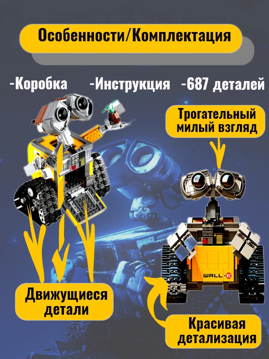 Описание: Один из самых интересных комплектов серии для детей и подростков, позволяющий собрать очаровательного робота-аннигилятора Валли, в которого после выхода одноименного мультфильма влюбились все без исключения. Знаменитый ярко-желтый корпус, подвижные манипуляторы, вращающиеся гусеницы, открывающийся отсек для хранения цветочка, голова с умильным взглядом огромных глаз — сходство с оригиналом покорит даже взрослых мальчиков и девочек.