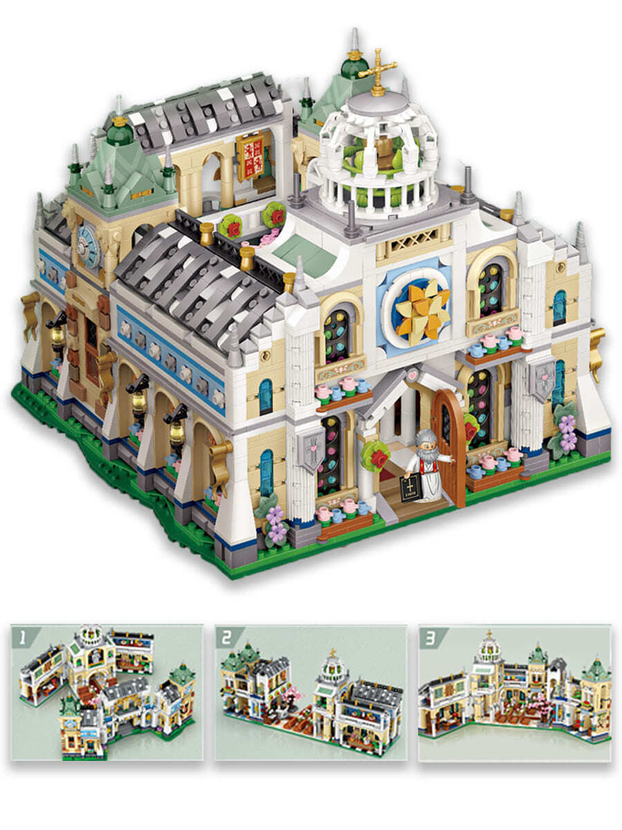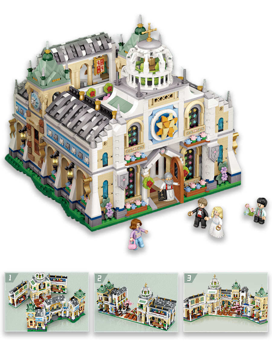 С помощью этих деталей легко и просто можно собрать детализированное здание церкви, где будет проходить свадебное торжество