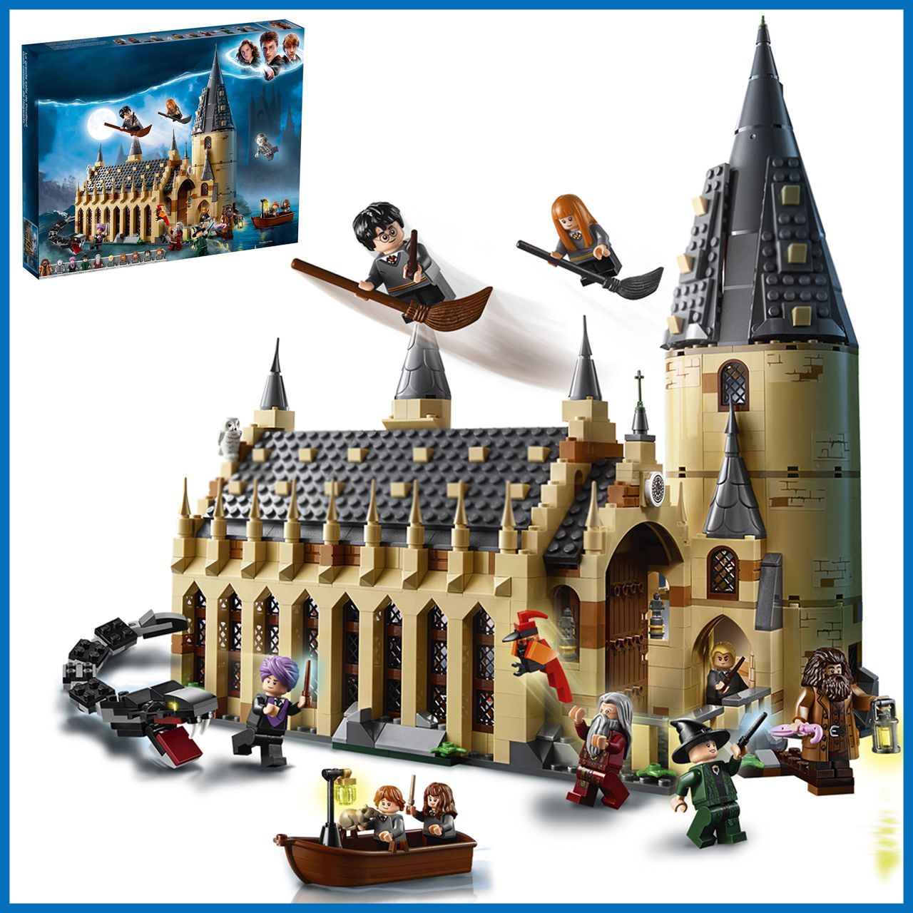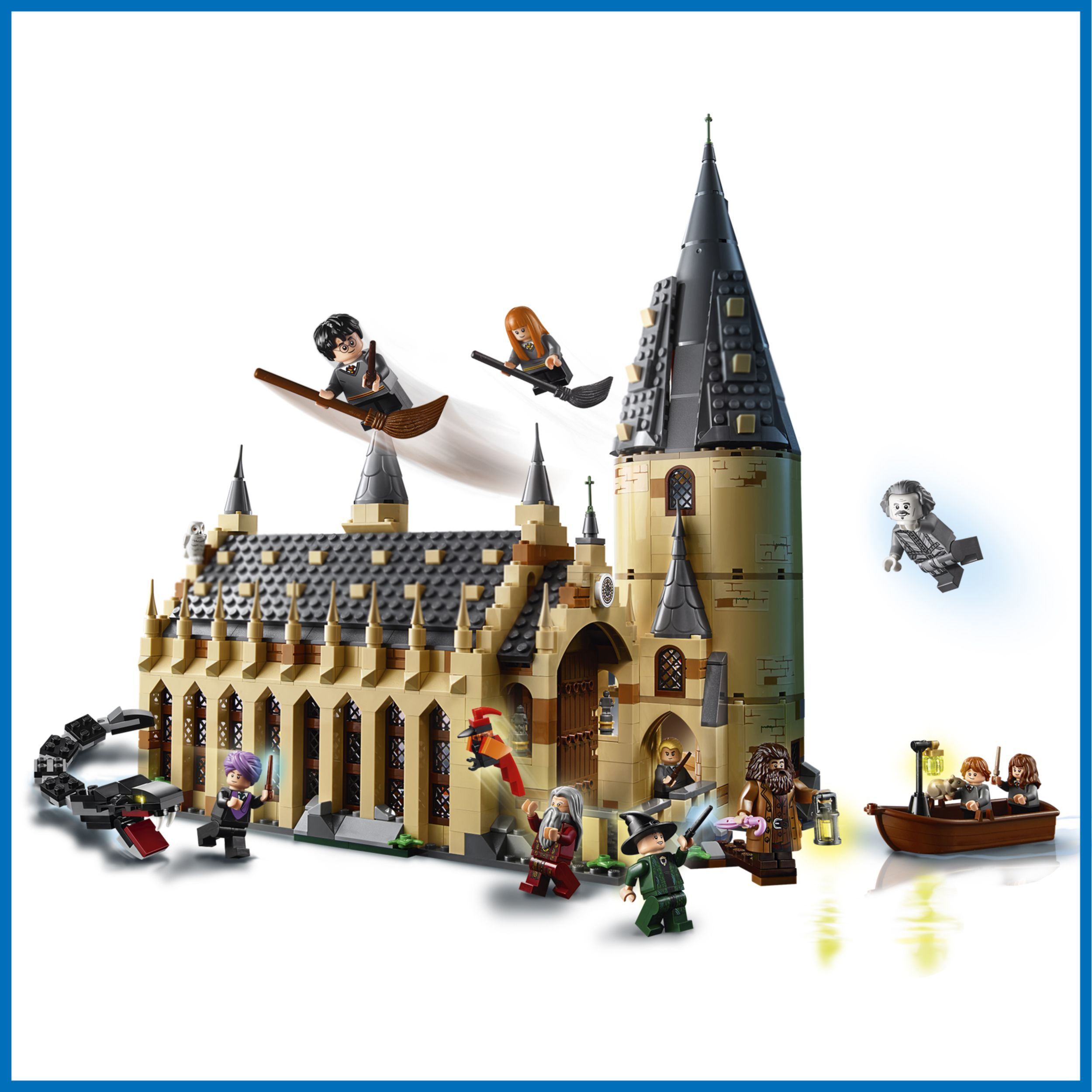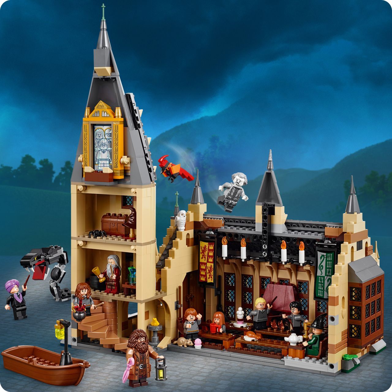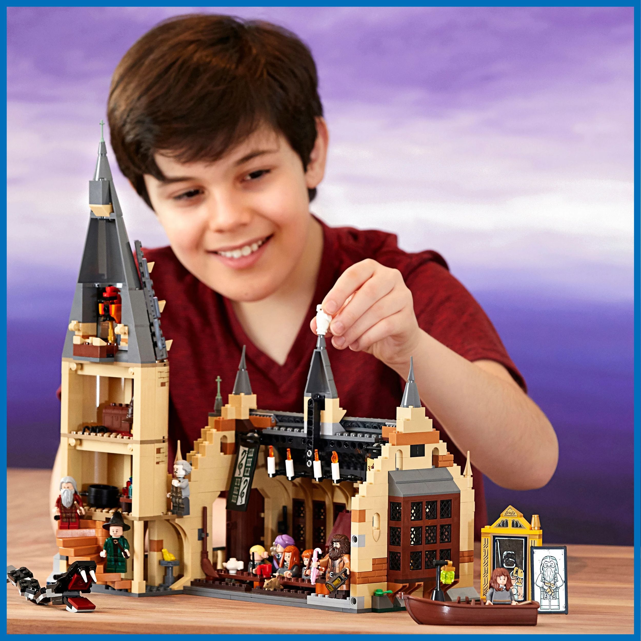 Загляни внутрьМечтаете очутиться в Большом зале Хогвартса и попасть в мир знаменитой школы волшебства?Лучший подарок Этот набор станет отличным подарком для любого маленького и взрослого поклонника уже ставшей классической киносаги про волшебника со шрамом.Готовы к приключениям?Благодаря этому набору вы сможете собрать невероятно детализированную модель Хогвартса с Большим залом, движущейся лестницей, учебным классом и комнатой с волшебными предметами, а еще лодку и самого Василиска!Развивает воображениеИгровой набор отлично развивает мелкую моторику, воображение, фантазию, усидчивость, творческое и пространственное мышление.