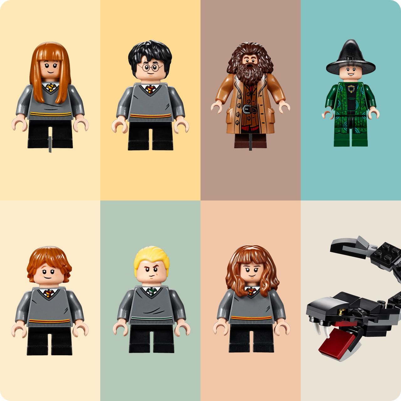 Большой набор В коробке вы найдете фигурки Гарри, Рона, Гермионы, Сьюзен Боунс, Драко Малфоя, Хагрида, привидения Гриффиндора — Почти Безголового Ника, Албуса Дамблдора, профессора Минервы Макгонагалл и, конечно, профессора Квиррелла.Бросьте вызов Драко Малфою!Сила против власти в Дуэльном клубе.Используйте Распределяющую шляпу!К какому Дому вы будете принадлежать?