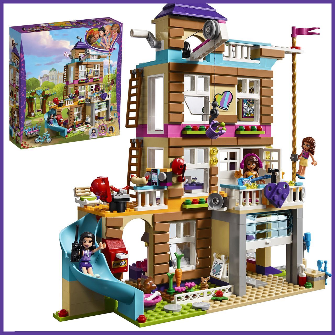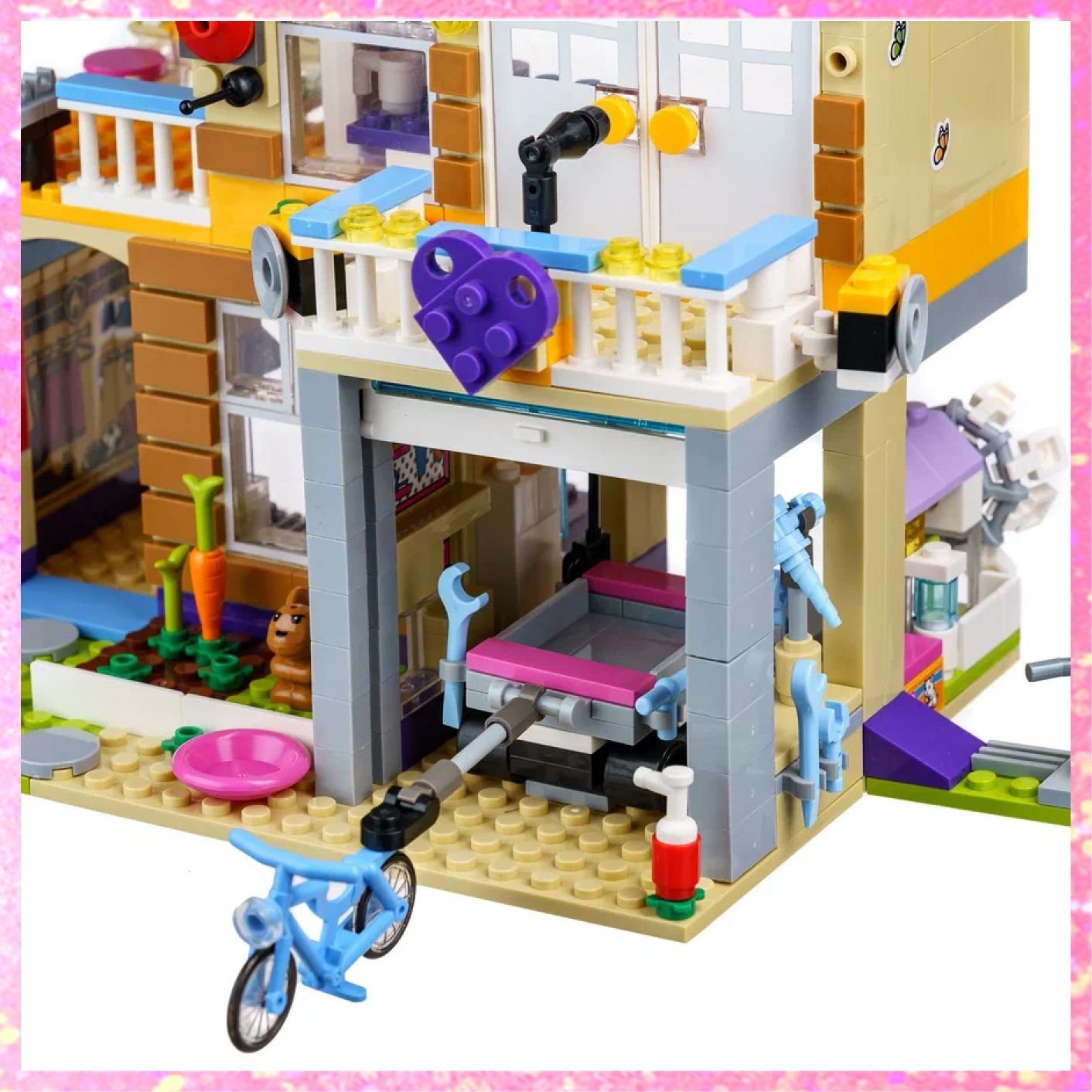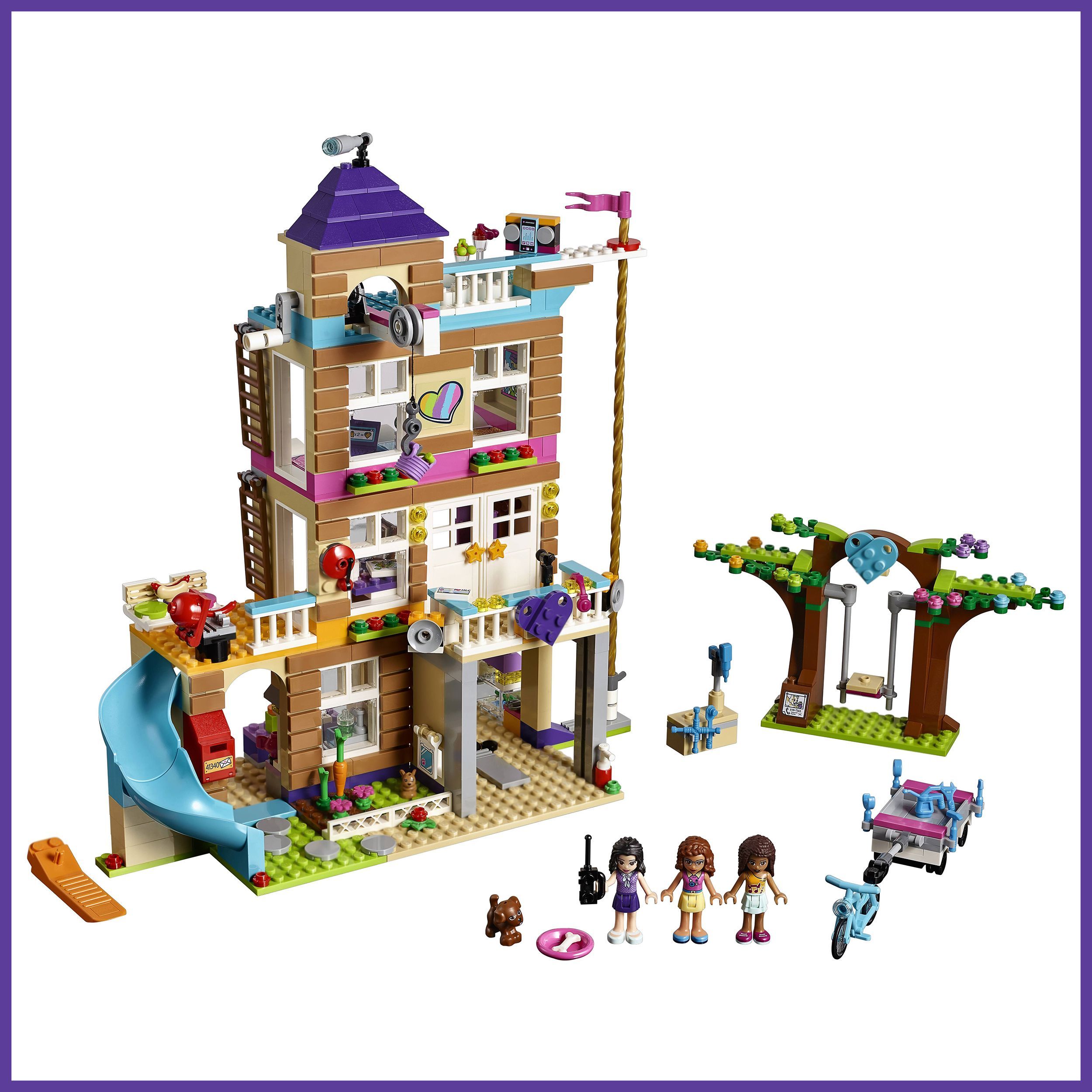 Описание: Соберите штаб-квартируПодружки получили в своё распоряжение старую пожарную станцию и превратили его в штаб-квартиру! Здесь можно отдохнуть в джакузи на крыше, заняться творчеством в мастерской Эммы или посмотреть представление, которое Эмма устраивает на террасе. Но тут раздаётся сигнал пожарной тревоги — значит, девочек ждёт работа!Поднимайте припасы в домАктивная лебедка, с помощью которой можно опускать и поднимать предметы в ведерке. Используйте рабочий шкив, чтобы поднять припасы в дом.Канат, по которому можно спуститьсяСползите с пожарного каната, запрыгните на велосипед и умчитесь вместе с трейлером Оливии, полным инструментов.Караоке таймВыход на балкон с золотыми звездами и фиолетовым сердечком, на котором Андреа любит устраивать рок-концерт.Исследуйте возможностиПриготовь попкорн на кухне и разверни телевизор в спальне: сзади есть секретный экран.Дом дружбыЭтот яркий детский конструктор Дом дружбы серии Френдс, бренда LX, 868 деталей придётся по душе всем любителям занимательной сборки конструкторов из серии friends. А это значит, что конструктор для девочки не оставит равнодушным никого. В комплекте конструктора есть дополнительные элементы и фигурки. Пластиковый конструктор для девочки имеет красивую подарочную упаковку. Каждая деталь тщательно проработана, что делает игру реалистичнее. Сборная модель конструктора оставит у вас самые лучшие впечатления. В процессе игры в конструктор ребёнок сам придумывает истории. Развивается воображение, навыки конструирования, мышление и мелкая моторика. Вложите в развитие ребёнка силы и время в первые годы жизни и получите в будущем великого изобретателя! Детский конструктор – лучший подарок ребёнку. Яркая подарочная упаковка может стать отличным фоном для будущих сюжетных игр! Конструктор блочный для девочек превращает развитие детей в увлекательное занятие. Смело покупайте этот детский конструктор развивающий и наслаждайтесь игрой вместе со своим ребёнком! Данный конструктор является монобрендом LX. Детский конструктор для мальчиков совместим со всеми известными брендами конструкторов. Игровой набор изготовлен из высококачественного пластика и полностью соответствует стандартам качества. Полностью безопасен для детей.Большой наборВключает 4-этажное переоборудованное здание пожарной части с гаражом, кухней, гостиной зоной, спальней, террасой на крыше, террасой для выступлений, боковым балконом с барбекю, работающей системой блоков, почтовым ящиком, вращающимся пожарным шестом и горкой, а также деревом дружбы с качелями и велосипед с прицепом.Интересные деталиНа террасе на крыше есть гидромассажная ванна, фреш-бар, музыкальная док-станция и смотровая башня с лестницей, ведущей на первый этаж, зона барбекю и телескопом.Гараж полон деталейВ гараже с подъемными воротами, способными фиксироваться под потолком, хранится транспортное средство Подружек, тележка с инструментами, верстак с шуруповертом и домик хомяка с открывающимися дверками и вращающимся колесом.Забавные аксессуарыАксессуары включают в себя 2 рации, инструменты, гитару, попкорн, пиццу, чайник, бутылку с жидкостью для мытья посуды, коробку для рукоделия, ножницы, плитку для произведений искусства, 5 тканевых одеял, mp3-плеер, бокалы для коктейлей и морковку.В комплекте3 минифигур