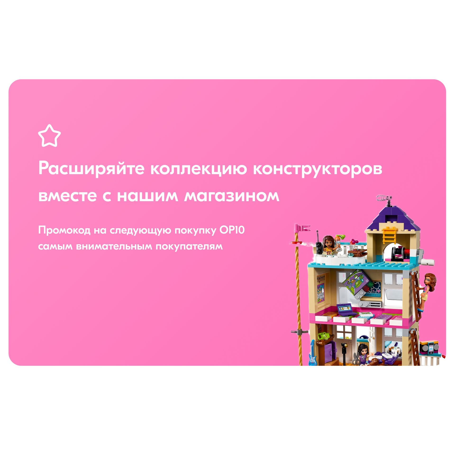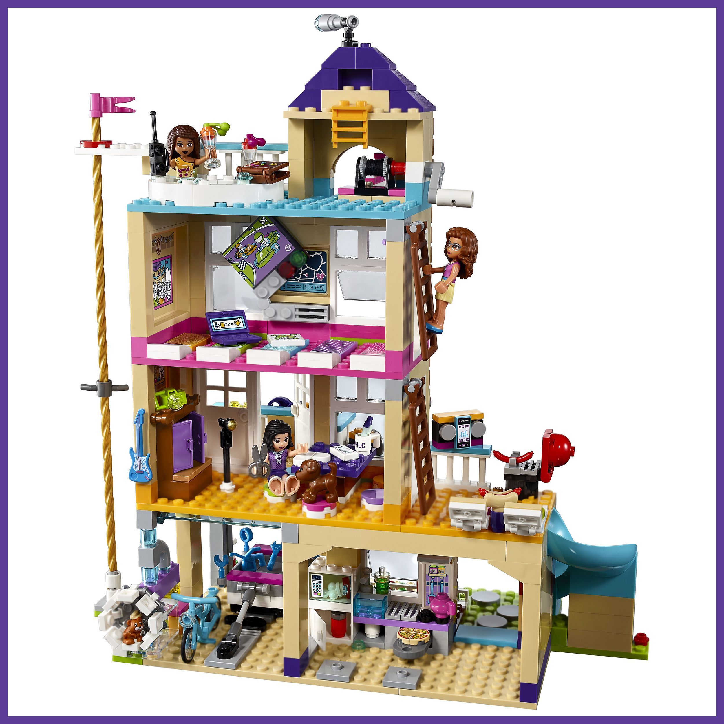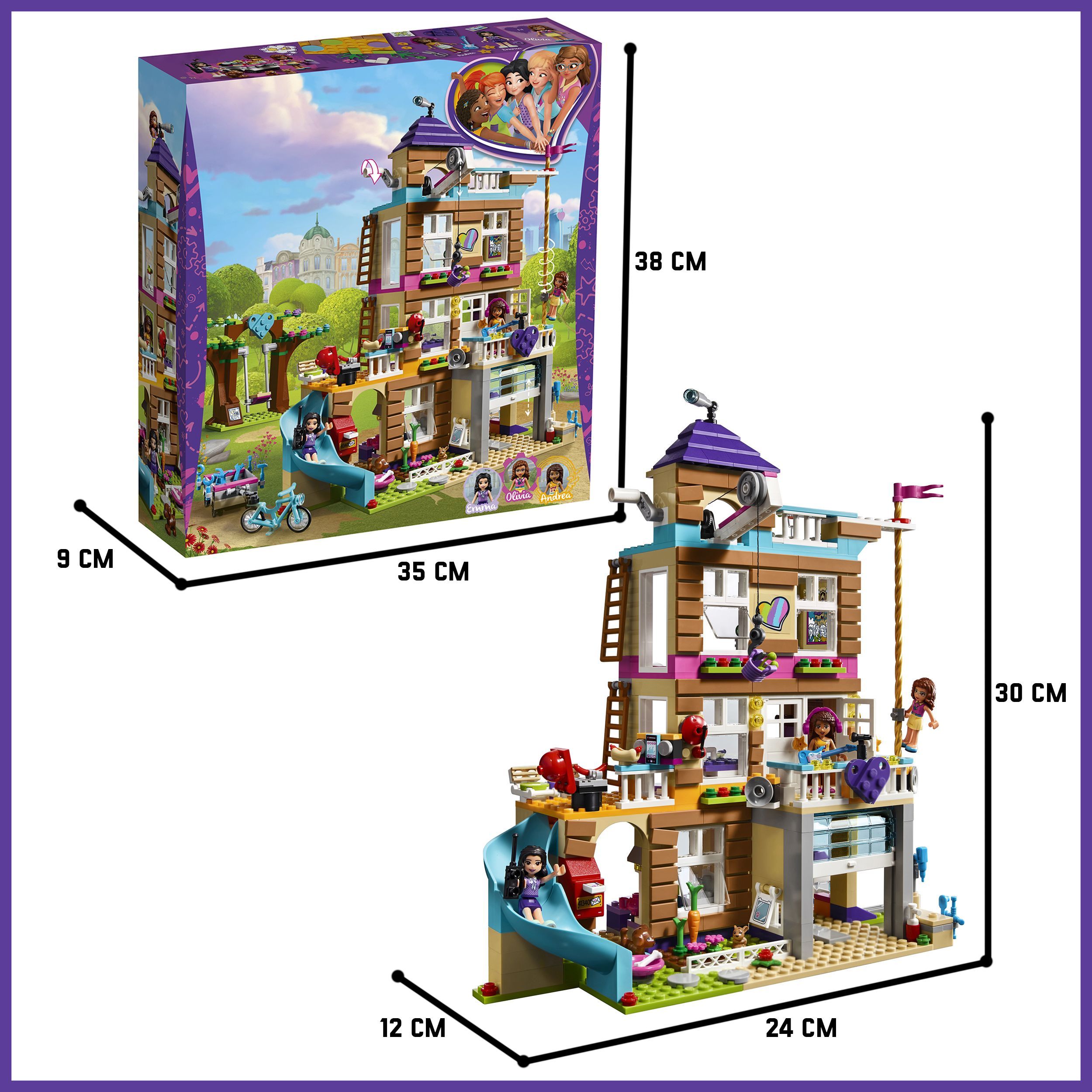 Описание: Соберите штаб-квартируПодружки получили в своё распоряжение старую пожарную станцию и превратили его в штаб-квартиру! Здесь можно отдохнуть в джакузи на крыше, заняться творчеством в мастерской Эммы или посмотреть представление, которое Эмма устраивает на террасе. Но тут раздаётся сигнал пожарной тревоги — значит, девочек ждёт работа!Поднимайте припасы в домАктивная лебедка, с помощью которой можно опускать и поднимать предметы в ведерке. Используйте рабочий шкив, чтобы поднять припасы в дом.Канат, по которому можно спуститьсяСползите с пожарного каната, запрыгните на велосипед и умчитесь вместе с трейлером Оливии, полным инструментов.Караоке таймВыход на балкон с золотыми звездами и фиолетовым сердечком, на котором Андреа любит устраивать рок-концерт.Исследуйте возможностиПриготовь попкорн на кухне и разверни телевизор в спальне: сзади есть секретный экран.Дом дружбыЭтот яркий детский конструктор Дом дружбы серии Френдс, бренда LX, 868 деталей придётся по душе всем любителям занимательной сборки конструкторов из серии friends. А это значит, что конструктор для девочки не оставит равнодушным никого. В комплекте конструктора есть дополнительные элементы и фигурки. Пластиковый конструктор для девочки имеет красивую подарочную упаковку. Каждая деталь тщательно проработана, что делает игру реалистичнее. Сборная модель конструктора оставит у вас самые лучшие впечатления. В процессе игры в конструктор ребёнок сам придумывает истории. Развивается воображение, навыки конструирования, мышление и мелкая моторика. Вложите в развитие ребёнка силы и время в первые годы жизни и получите в будущем великого изобретателя! Детский конструктор – лучший подарок ребёнку. Яркая подарочная упаковка может стать отличным фоном для будущих сюжетных игр! Конструктор блочный для девочек превращает развитие детей в увлекательное занятие. Смело покупайте этот детский конструктор развивающий и наслаждайтесь игрой вместе со своим ребёнком! Данный конструктор является монобрендом LX. Детский конструктор для мальчиков совместим со всеми известными брендами конструкторов. Игровой набор изготовлен из высококачественного пластика и полностью соответствует стандартам качества. Полностью безопасен для детей.Большой наборВключает 4-этажное переоборудованное здание пожарной части с гаражом, кухней, гостиной зоной, спальней, террасой на крыше, террасой для выступлений, боковым балконом с барбекю, работающей системой блоков, почтовым ящиком, вращающимся пожарным шестом и горкой, а также деревом дружбы с качелями и велосипед с прицепом.Интересные деталиНа террасе на крыше есть гидромассажная ванна, фреш-бар, музыкальная док-станция и смотровая башня с лестницей, ведущей на первый этаж, зона барбекю и телескопом.Гараж полон деталейВ гараже с подъемными воротами, способными фиксироваться под потолком, хранится транспортное средство Подружек, тележка с инструментами, верстак с шуруповертом и домик хомяка с открывающимися дверками и вращающимся колесом.Забавные аксессуарыАксессуары включают в себя 2 рации, инструменты, гитару, попкорн, пиццу, чайник, бутылку с жидкостью для мытья посуды, коробку для рукоделия, ножницы, плитку для произведений искусства, 5 тканевых одеял, mp3-плеер, бокалы для коктейлей и морковку.В комплекте3 минифигур