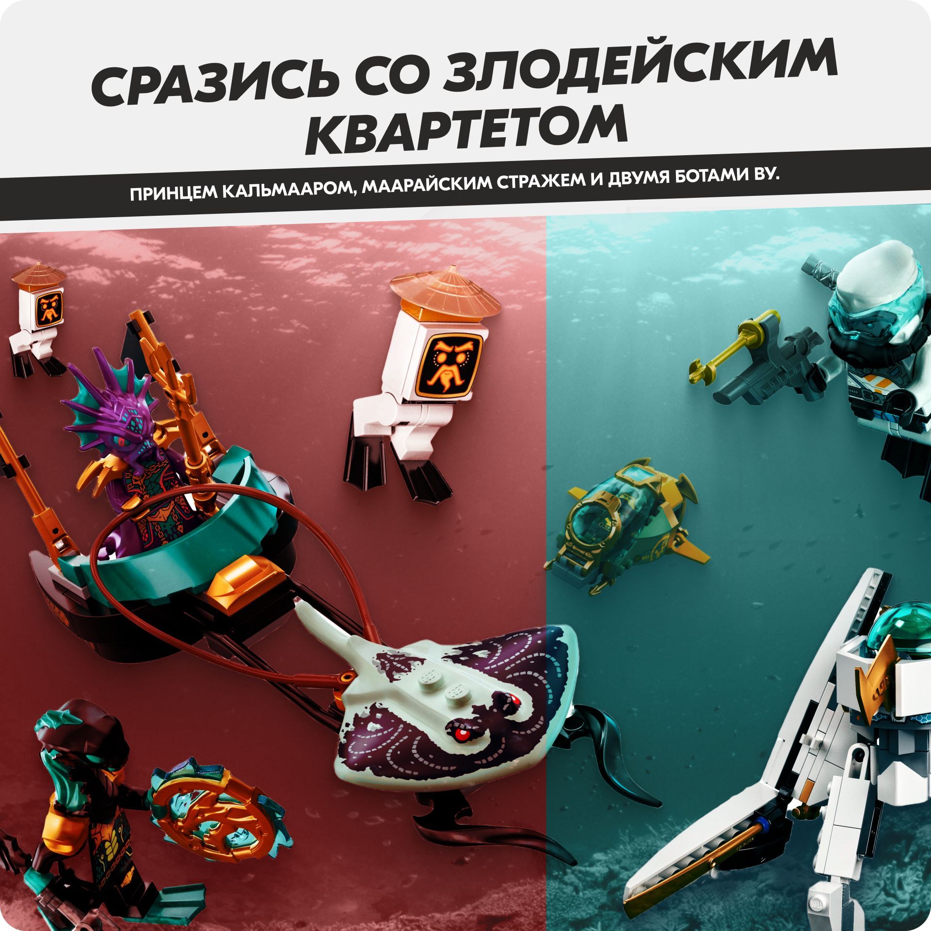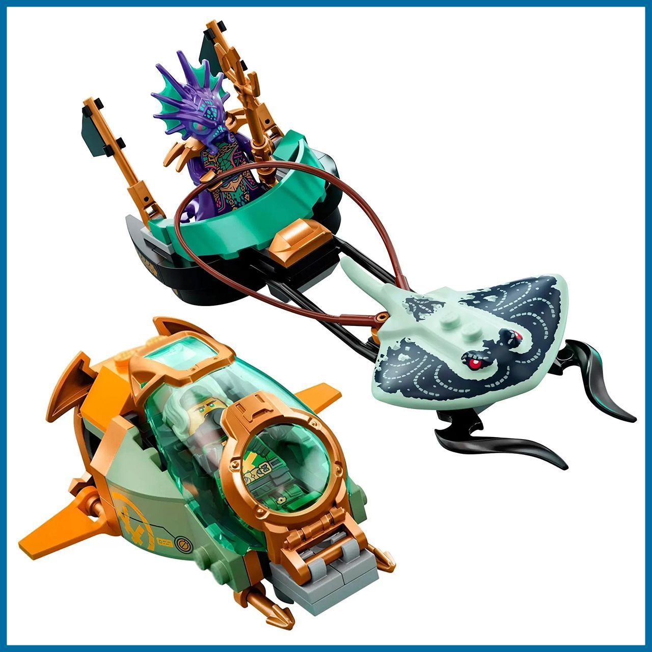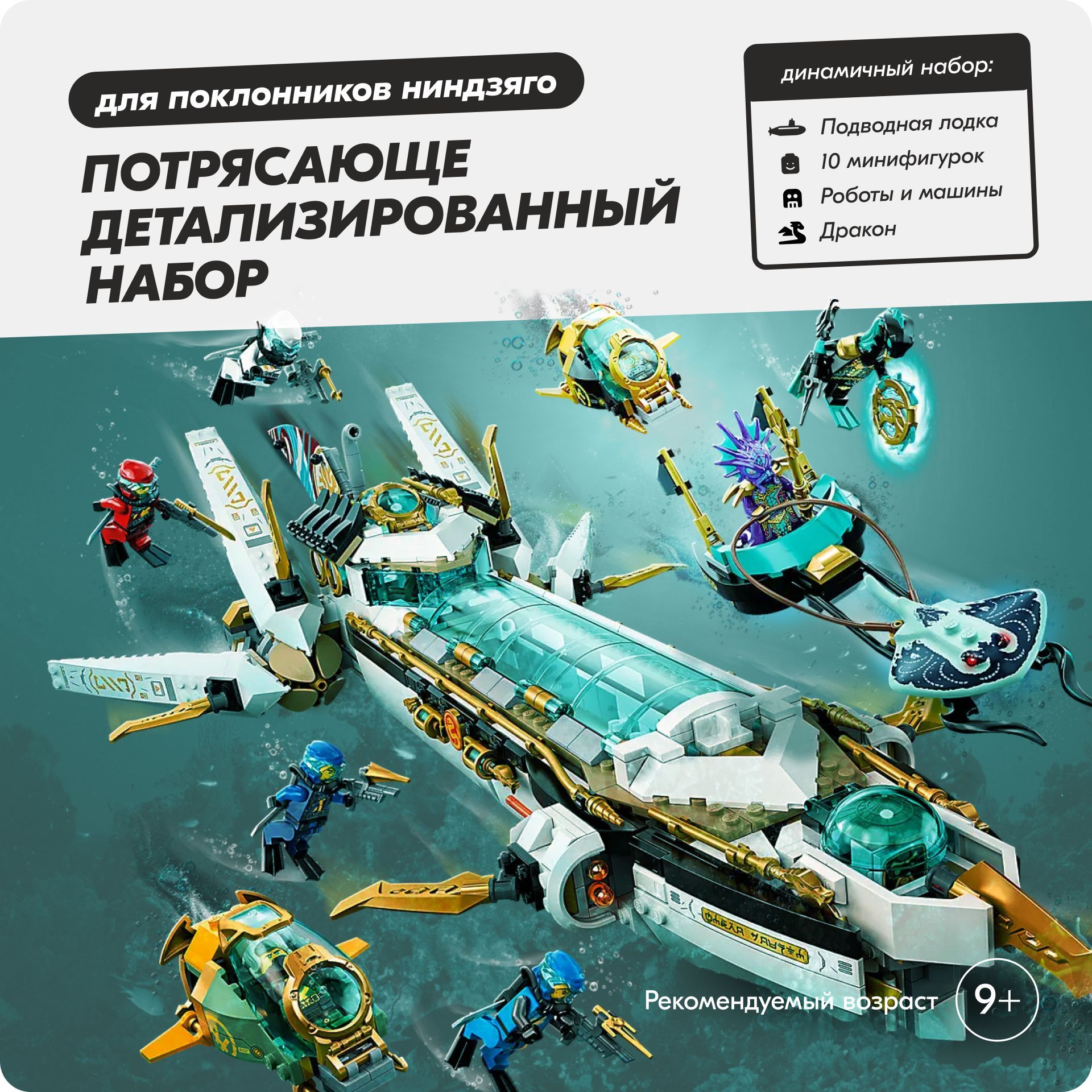 Описание: Сверхбыстрая вооруженная подводная лодкаГидро Б имеет складывающиеся крылья и 2 стрелки.10 минифигурокКай с аквалангом, Коул с аквалангом, Джей с аквалангом, Ллойд с аквалангом, Зейн с аквалангом и Ния с аквалангом, Принц Кальмаар, Маарайский страж и два бота ВуСъемный роботПодводная лодка включает в себя мини-робота для сражений.Множество крутых функцийДва пружинных орудия, открывающаяся кабина, складные крылья, съёмный робот и две мини-подлодки. Все это для того, чтобы разжечь воображение юных поклонников ниндзя!Подводный Дар СудьбыЭтот яркий детский конструктор придётся по душе всем любителям занимательной сборки конструкторов. А это значит, что конструктор для мальчиков не оставит равнодушным никого. В комплекте конструктора для детей есть дополнительные элементы и фигурки. Пластиковый конструктор имеет красивую подарочную упаковку. Каждая деталь тщательно проработана, что делает игру реалистичнее. Конструктор для мальчика оставит у вас самые лучшие впечатления. В процессе игры в конструктор блочный ребёнок сам придумывает истории. Развивается воображение, навыки конструирования, мышление и мелкая моторика. Развивающая игрушка – лучший подарок ребёнку. Яркая подарочная упаковка может стать отличным фоном для будущих игр. Конструктор превращает развитие детей в увлекательное занятие. Смело покупайте этот детский конструктор и наслаждайтесь игрой вместе со своим ребёнком! Данный конструктор является монобрендом. Конструктор роботы совместим со всеми известными брендами конструкторов. Наш большой ассортимент конструкторов для детей позволяет выбрать модель, подходящую для вашего ребёнка. Конструктор изготовлен из высококачественного пластика и полностью соответствуем стандартам качества. Полностью безопасен для детей.