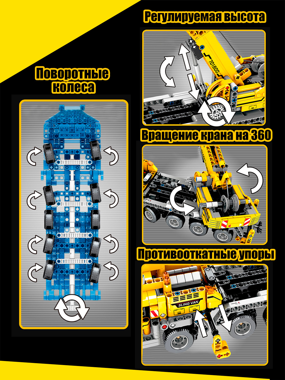 Конструктор машина WiMi, подъемный кран из 665 деталей, строительная техника из миниблоков с подвижным механизмом, 3 минифигурки в комплекте, сборная модель