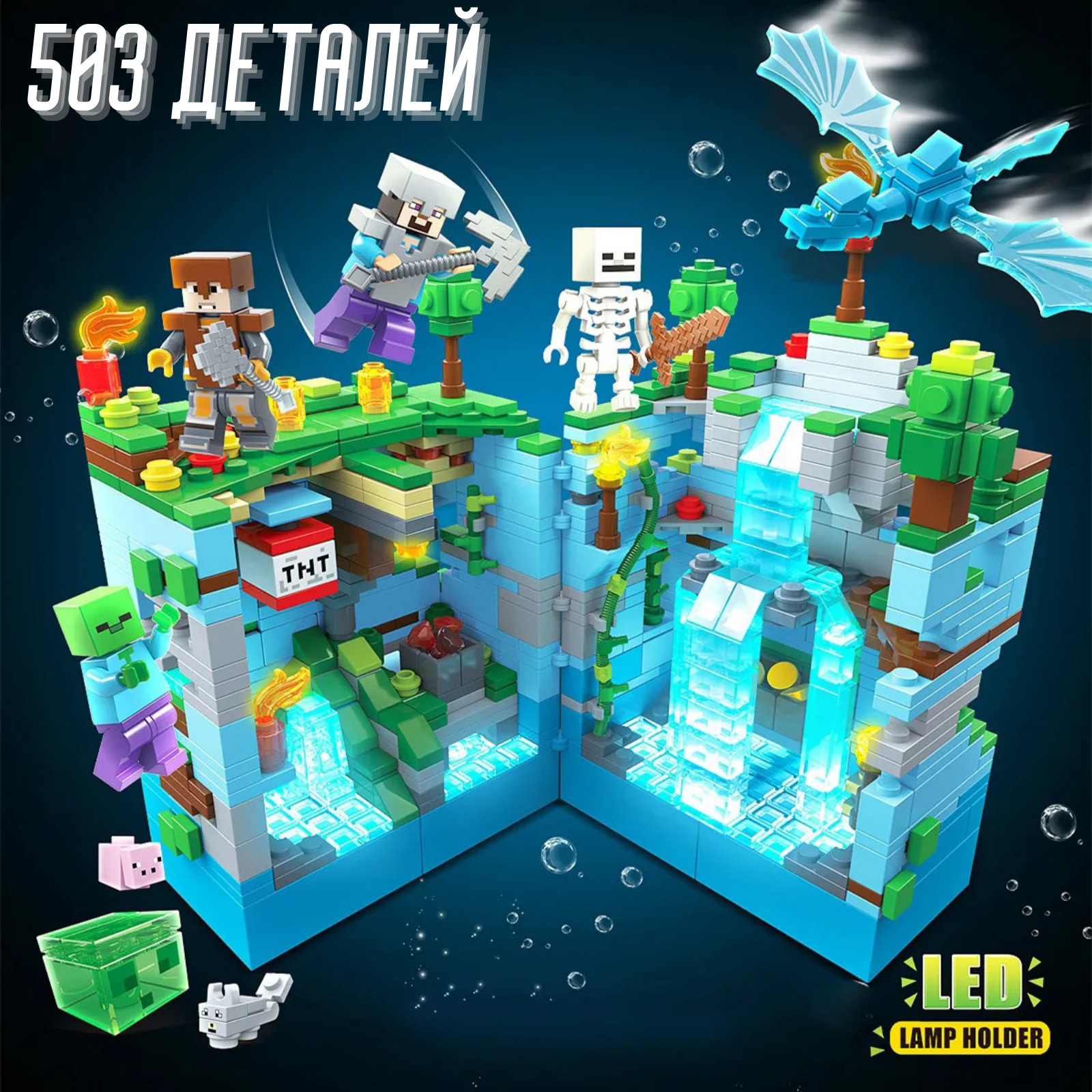 Конструктор Майнкрафт 503 деталей "Затопленная крепость" с LED подсветкой / Конструктор minecraft / конструктор для мальчиков