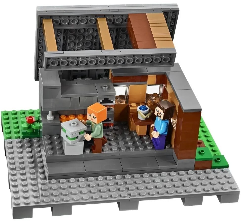 Описание: Большой набор "Деревня с жителями"создан специально для тех, кто мечтает перенести действие любимой компьютерной игры в реальную жизнь.Основой набора служит масштабная модель, состоящая из нескольких локаций. Благодаря модульному строению их очерёдность можно менять, трансформируя пространство и добавляя новые объекты.Условно всё игровое поле разделено на несколько частей, включающих в себя элементы леса,луга, пустыни и покрытых снегом скал.Слева располагается дождевой лес, характеризующийся обилием зеленой травы, папоротников и высоких деревьев. Под раскидистой кроной одного из них устроен небольшой рынок. Его отличительной особенностью является красно-белая крыша и столешница, играющая роль прилавка. На ней деревенские жители раскладывают свой товар, состоящий из продуктов питания и ценных предметов. При желании здесь можно полакомиться сочными овощами, спелыми фруктами и свежеиспечёнными тортами, а также раздобыть железные слитки для создания прочной брони.Если Вам понадобится оружие, то лучше всего заглянуть в соседнее здание с поднимающейся металлической крышей. Это кузница, в которой есть всё необходимое для работы: 2 раскалённые печи, наковальня,стол и угловая лавка. Так как для закалки металла нужна холодная вода, то её следует зачерпнуть в соседнем колодце, окружённом песчаными блоками.Также вода необходима и для фермерских угодий. Чтобы собрать богатый урожай, грядки с картофелем, морковью и пшеницей нужно регулярно поливать, не забывая при этом о бамбуке и цветах мака.При желании рядом с посадками можно сколотить просторный загон для домашних животных. Близкое соседство с корнеплодами привлечёт свиней, и те с удовольствием поселятся в приготовленных для них вольерах.Правая часть деревни состоит из трёх бревенчато-каменных построек. Две из них напоминают уютные домики с двускатными крышами, прозрачными окошками и массивными дверями. Благодаря распашной конструкции,можно заглянуть внутрь каждого из них и рассмотреть интерьер.Жилище мясника не отличается особым убранством. В нём есть только стол, угловая лавка и сундук, но обустройство комнаты можно продолжить, добавив в неё предметы, найденные в процессе игры. Напротив выстроен похожий дом. Он играет роль библиотеки,о чём свидетельствует подобие читального зала, книжные полки и паутина, свисающая с потолка.Между домом мясника и библиотекой расположена дозорная вышка с прочным фундаментом.Под опорными балками скрывается изумрудная руда для создания непробиваемой брони и грибы для приготовления пищи.Охраной этих ценных находок занимается Железный голем.Он смело отбивает нападения враждебных мобов и заставляет их держаться подальше от обитателей деревни.Конструктор рассчитан на детей 6-12 лет, но, поверьте, взрослый фанат игры тоже будет рад заполучить его в свою коллекцию.Играть с персонажами очень интересно, ведь они тщательно детализированы и так похожи на виртуальных героев Minecraft.Кроме того, у всех фигурок двигаются части тела.Мы продаем конструктор Майнкрафт деревня. Воспользуйтесь возможностью сделать прекрасный подарок поклоннику популярной компьютерной игры!