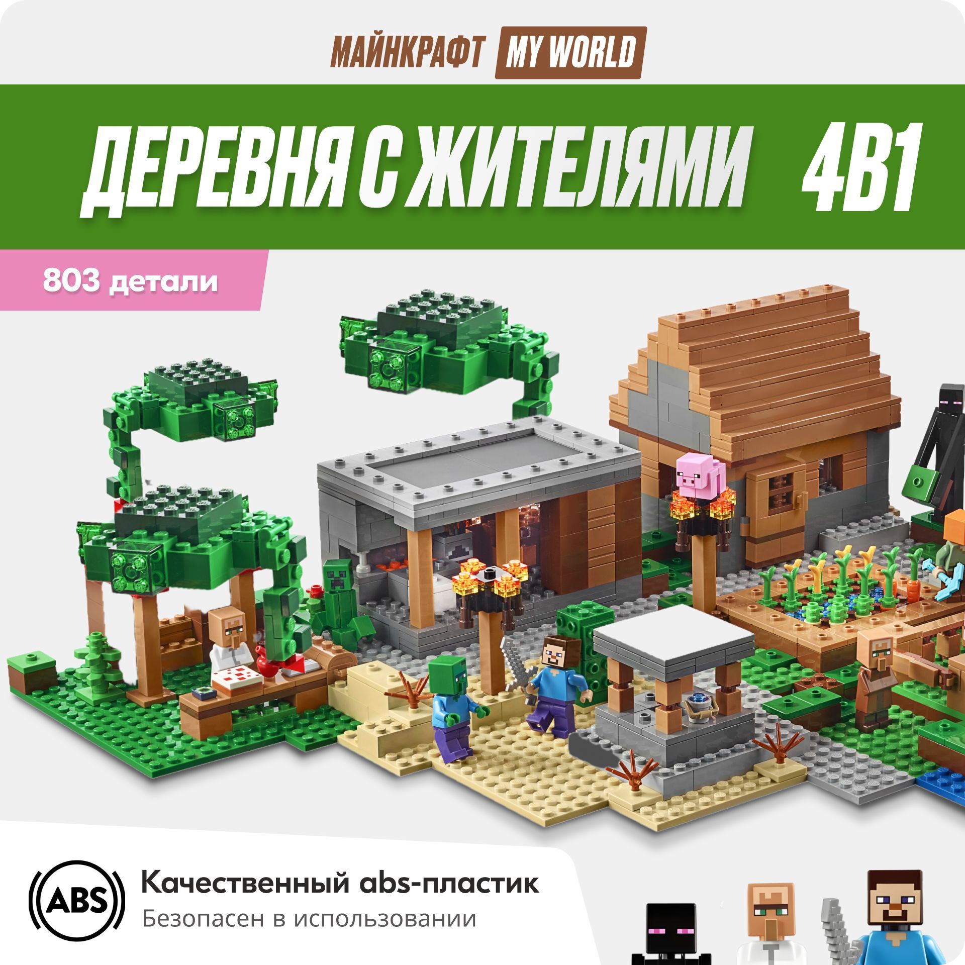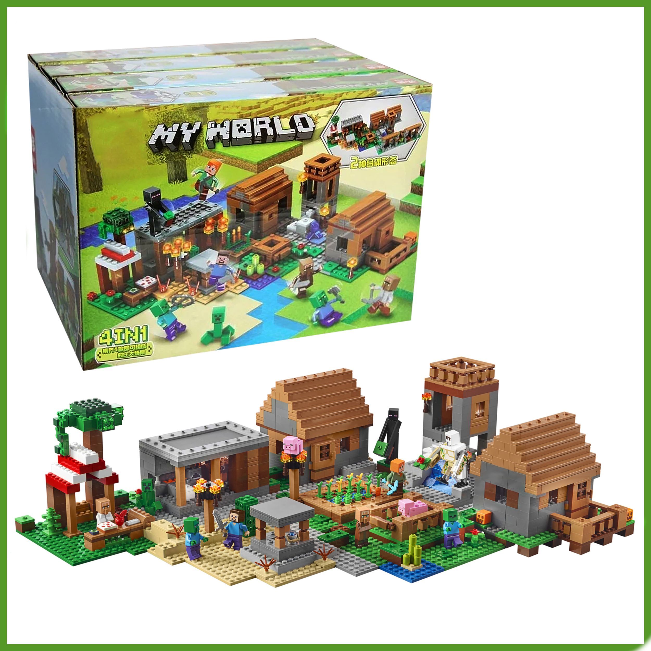Конструктор Майнкрафт Деревня 4 в 1, 803 детали, 8 минифигурок Лего совместимый