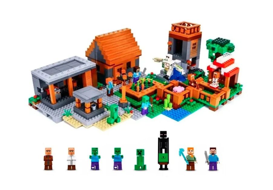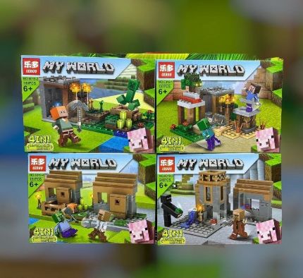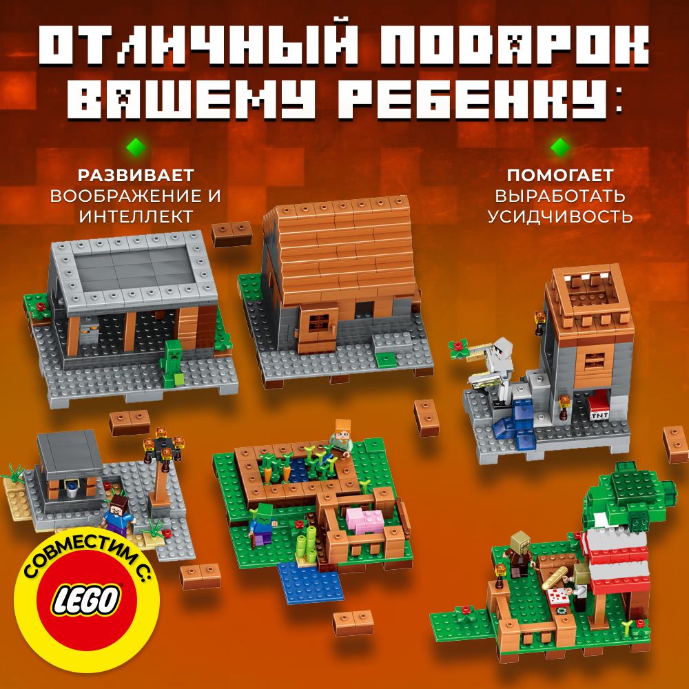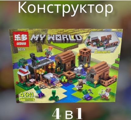 Описание: Майнкрафт конструктор minecraft для детей подойдет как для мальчиков, так и для девочек. Конструктор для мальчика - увлекательный процесс, развивающий мышление, логику, воображение, фантазию, мелкую моторику, память, навыки конструирования, робототехники, программирования, творчества.  Пластиковый конструктор служит прекрасным подарком на день рождения, новый год, 23 февраля, 8 марта учителю, ребенку, подростку и увлечет даже взрослых. Большой игровой набор состоит из гипоаллергенного пластика, упаковка из картонной коробки.  Конструктор Майнкрафт содержит в упаковке 4 набора. Конструктор это больше чем просто игра для детей. Подарочные игровые блоки маинкрафт в сборном виде можно поставить дома на компьютерный стол или полку и собрать целую коллекцию крупных локаций, игрушечный город лабиринт фигур можно легко собирать его с друзьями и семьей.  Конструктор детский - отличный подарок для мальчика и для девочки 6, 7, 8, 9, 10, 11, 12 лет на день Рождения, Новый год, 8 марта, 23 февраля, выпускной или просто, чтобы порадовать!Конструктор Майнкрафт "Деревня" 4в1, 803 детали.Майнкрафт конструктор minecraft для детей подойдет как для мальчиков, так и для девочек. Конструктор для мальчика - увлекательный процесс, развивающий мышление, логику, воображение, фантазию, мелкую моторику, память, навыки конструирования, робототехники, программирования, творчества.