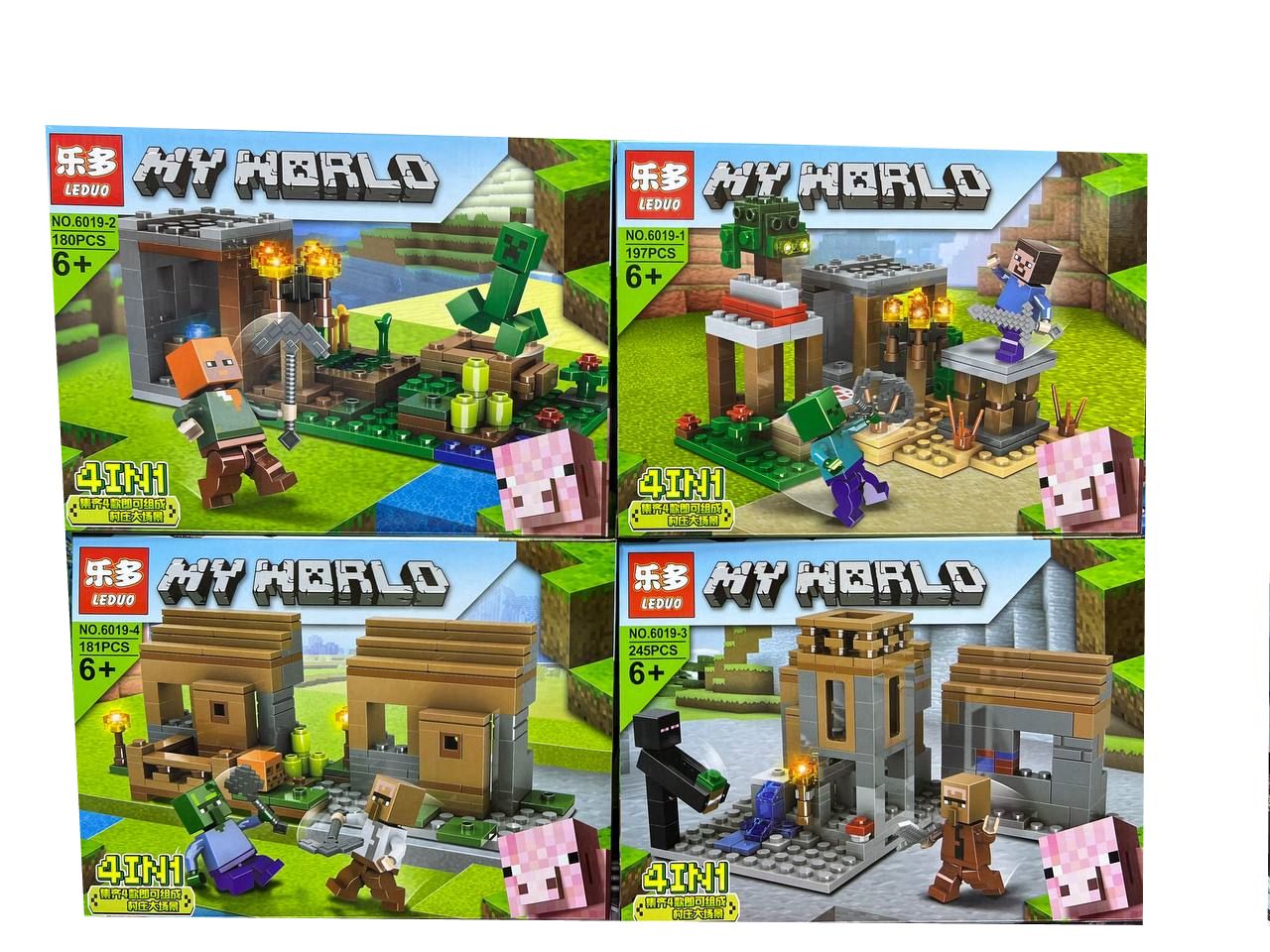 Конструктор Майнкрафт содержит в упаковке 4 набора. Конструктор это больше чем просто игра для детей. Подарочные игровые блоки маинкрафт в сборном виде можно поставить дома на компьютерный стол или полку и собрать целую коллекцию крупных локаций, игрушечный город лабиринт фигур можно легко собирать его с друзьями и семьей.