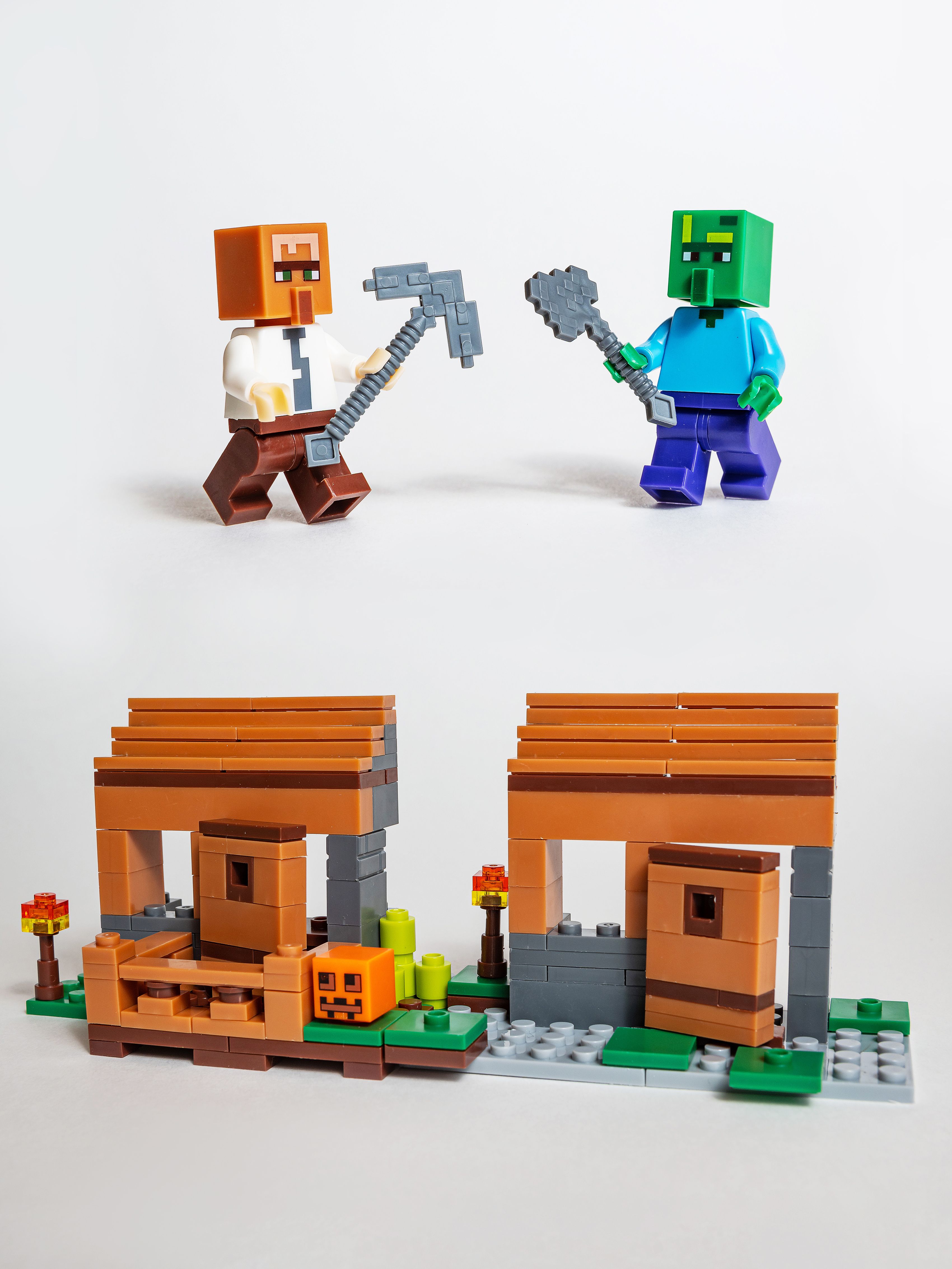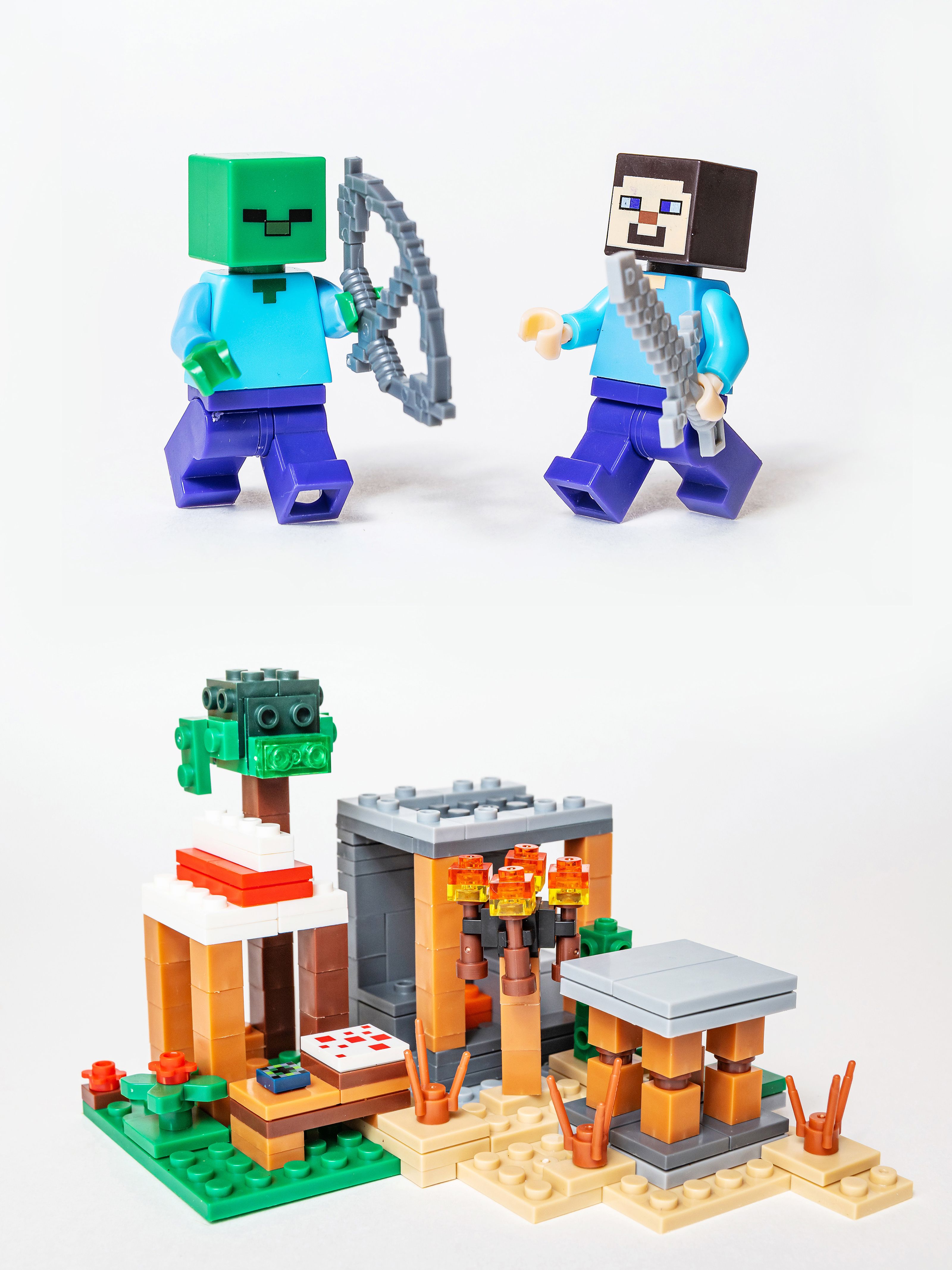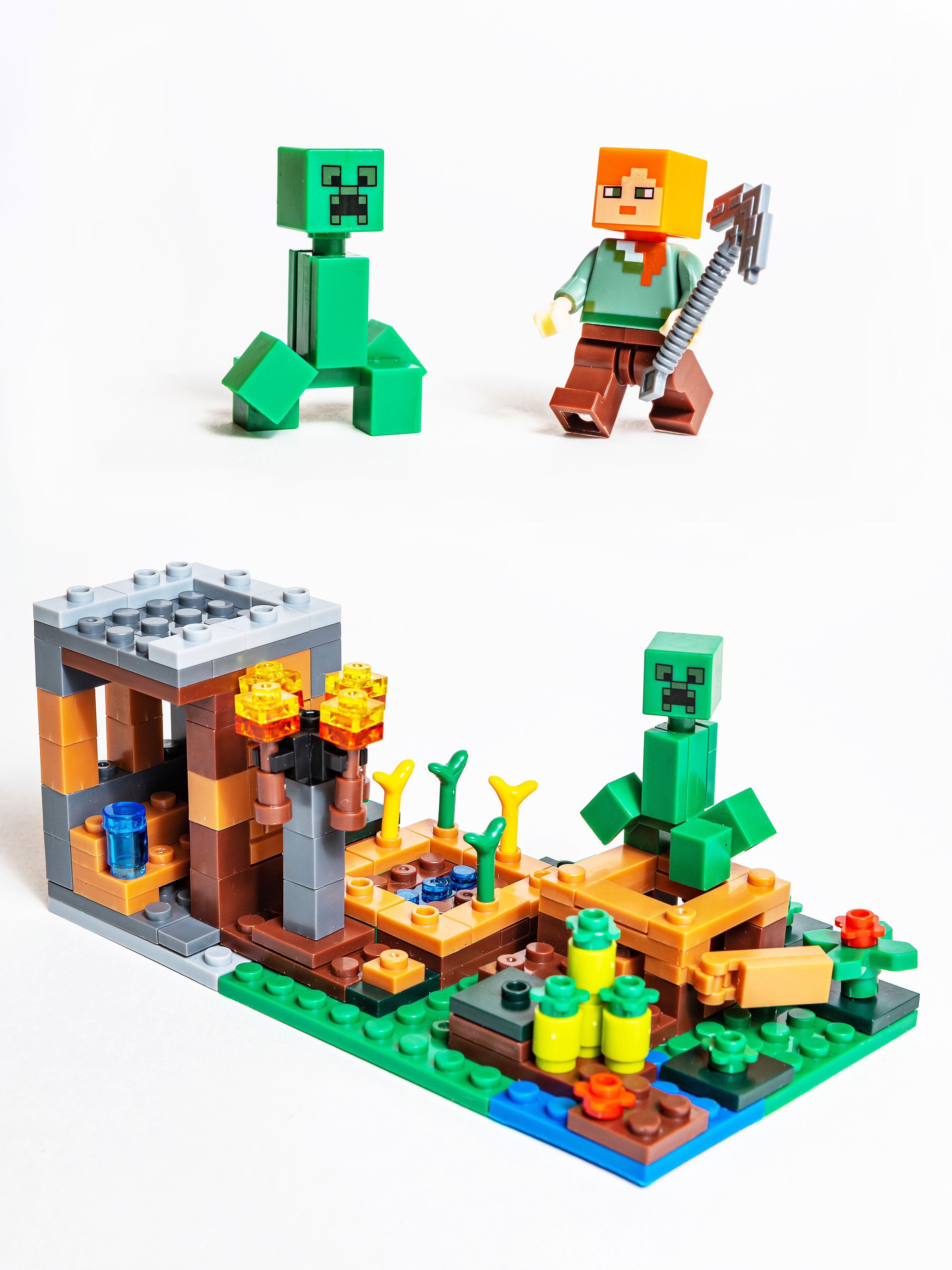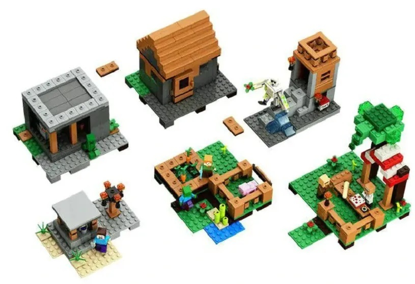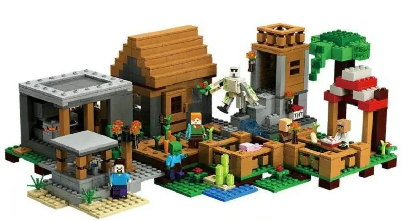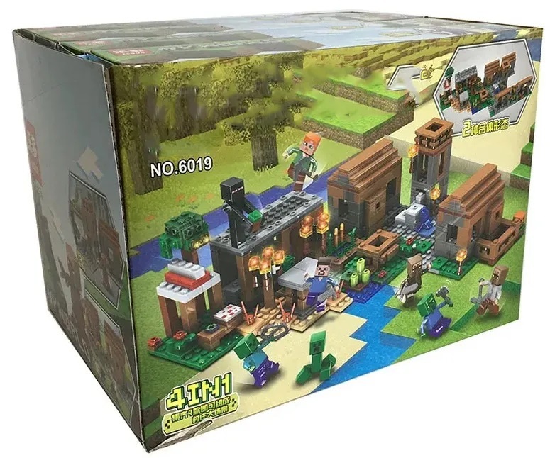 Описание: 4 конструктора в одном наборе , которые собираются в один большой! Качественный конструктор самого популярного формата! Детали легко соединяются между собой, и ребёнок без труда может собрать весёлый игровой комплект, придумывая различные сюжеты в игре. Игры с конструктором развивают творческое мышление, усидчивость и мелкую моторику. Полный набор всех 4 конструкторов состоит из 803деталей и 8 фигурок.Представляем набор из , который впечатляет своими размерами и продуманным функционалом.Большой набор конструктора "Деревня с жителями"создан специально для тех, кто мечтает перенести действие любимой компьютерной игры в реальную жизнь.Основой набора служит масштабная модель, состоящая из нескольких локаций. Благодаря модульному строению их очерёдность можно менять, трансформируя пространство и добавляя новые объекты.Условно всё игровое поле разделено на несколько частей, включающих в себя элементы леса,луга, пустыни и покрытых снегом скал.Слева располагается дождевой лес, характеризующийся обилием зеленой травы, папоротников и высоких деревьев. Под раскидистой кроной одного из них устроен небольшой рынок. Его отличительной особенностью является красно-белая крыша и столешница, играющая роль прилавка. На ней деревенские жители раскладывают свой товар, состоящий из продуктов питания и ценных предметов. При желании здесь можно полакомиться сочными овощами, спелыми фруктами и свежеиспечёнными тортами, а также раздобыть железные слитки для создания прочной брони.Если Вам понадобится оружие, то лучше всего заглянуть в соседнее здание с поднимающейся металлической крышей. Это кузница, в которой есть всё необходимое для работы: 2 раскалённые печи, наковальня,стол и угловая лавка. Так как для закалки металла нужна холодная вода, то её следует зачерпнуть в соседнем колодце, окружённом песчаными блоками.Также вода необходима и для фермерских угодий. Чтобы собрать богатый урожай, грядки с картофелем, морковью и пшеницей нужно регулярно поливать, не забывая при этом о бамбуке и цветах мака.При желании рядом с посадками можно сколотить просторный загон для домашних животных. Близкое соседство с корнеплодами привлечёт свиней, и те с удовольствием поселятся в приготовленных для них вольерах.Правая часть деревни состоит из трёх бревенчато-каменных построек. Две из них напоминают уютные домики с двускатными крышами, прозрачными окошками и массивными дверями. Благодаря распашной конструкции,можно заглянуть внутрь каждого из них и рассмотреть интерьер.Жилище мясника не отличается особым убранством. В нём есть только стол, угловая лавка и сундук, но обустройство комнаты можно продолжить, добавив в неё предметы, найденные в процессе игры. Напротив выстроен похожий дом. Он играет роль библиотеки,о чём свидетельствует подобие читального зала, книжные полки и паутина, свисающая c потолка.Между домом мясника и библиотекой расположена дозорная вышка с прочным фундаментом.Под опорными балками скрывается изумрудная руда для создания непробиваемой брони и грибы для приготовления пищи.Охраной этих ценных находок занимается Железный голем.Он смело отбивает нападения враждебных мобов и заставляет их держаться подальше от обитателей деревни.Конструктор рассчитан на детей 6-12 лет, но, поверьте, взрослый фанат игры тоже будет 
