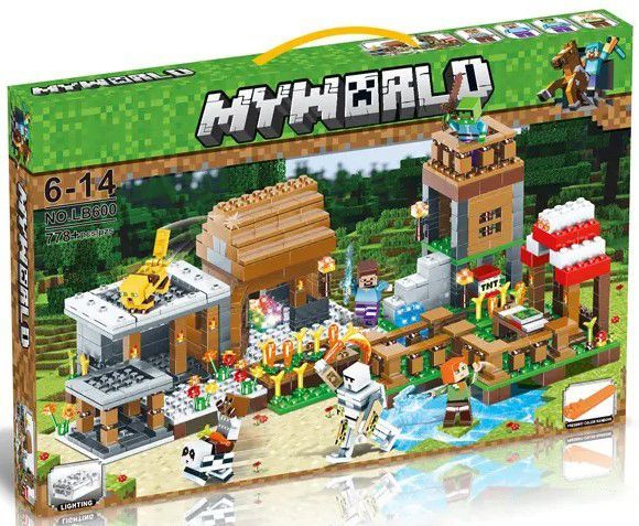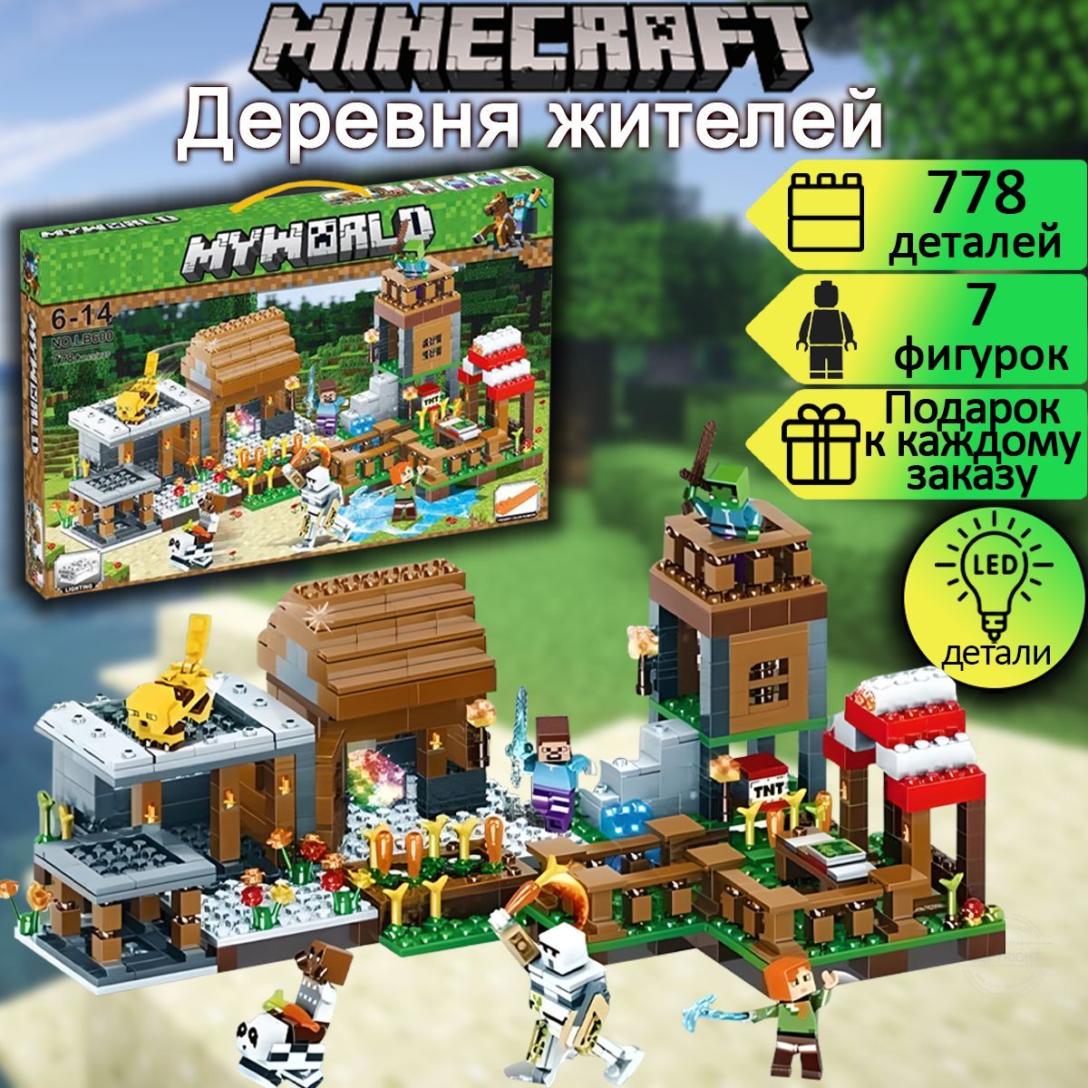 Конструктор Майнкрафт Деревня жителей Стива LED-детали, 778 деталей