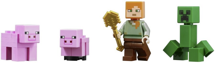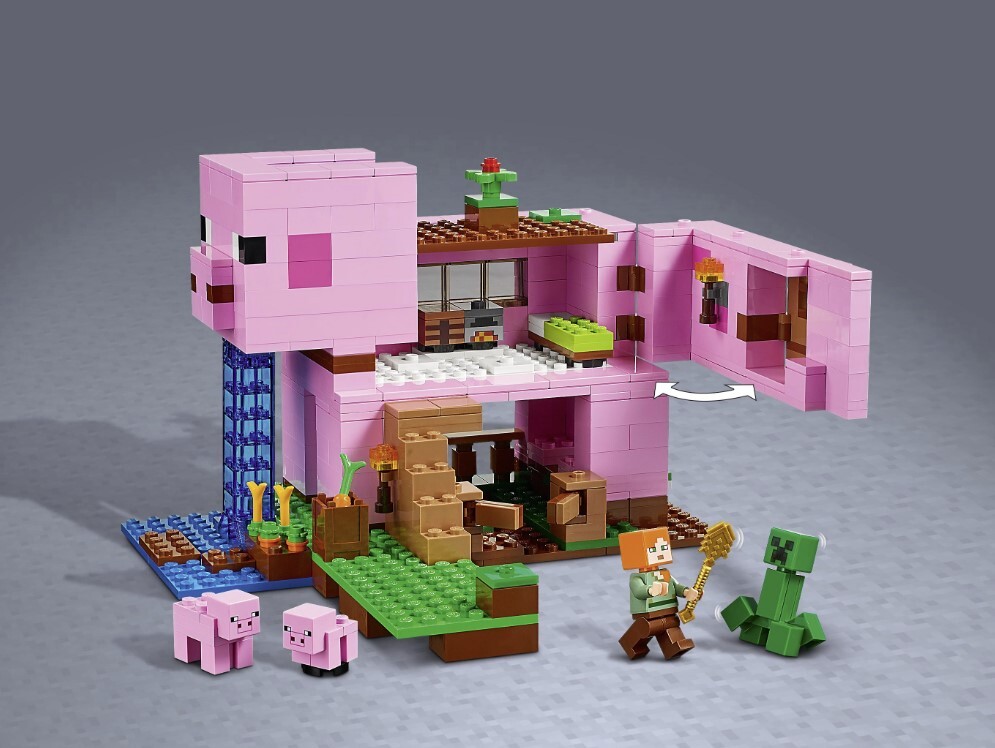 Описание: С конструктором «Дом-свинья» вы сможете проявить свои творческие способности. Главная задача – построить дом в виде гигантской свиньи. Раскрывающаяся боковая стена являет взору большую комнату, а съемная крыша открывает в свиной голове маленькую. Ознакомьтесь с интерьером вместе с Алекс. Но будьте осторожны: поблизости крипер. Если захотите поменять обстановку, переместите в другое место комнату. Конструктор по мотивам игры – отличный подарок ребенку. Конструктор с фигурками совместим с другими наборами Minecraft. Небольшой конструктор перенесет Minecraft из сетевой игры в реальный мир: те же возможности, персонажи и сцены. Функция взрыва разнесет модель на мелкие кусочки. Дополнительные детали – свиньи, морковка и аксессуары – позволяют придумать еще больше сюжетов для увлекательной игры.