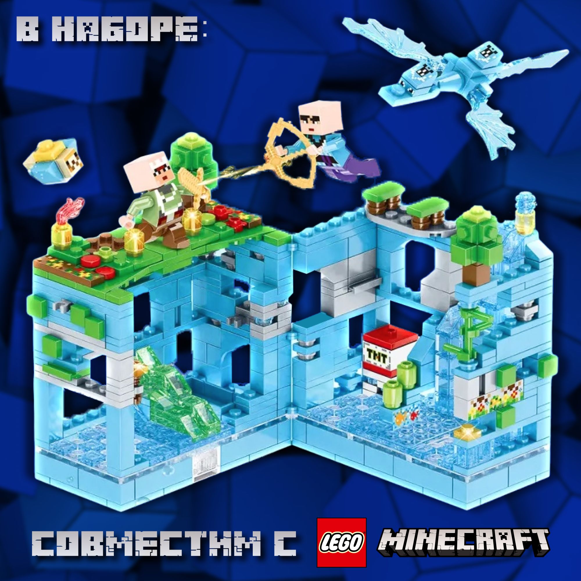 Конструктор майнкрафт игрушка Minecraft, набор "Битва в Водной Пещере, подводная крепость"/ 503 детали, 2 фигурки, дракон, подсветка / конструктор для мальчика / блочный совместим с лего Майнкрафт