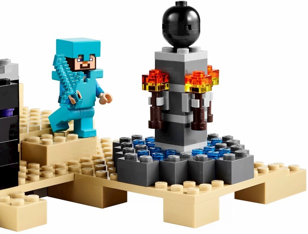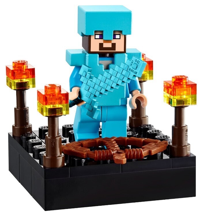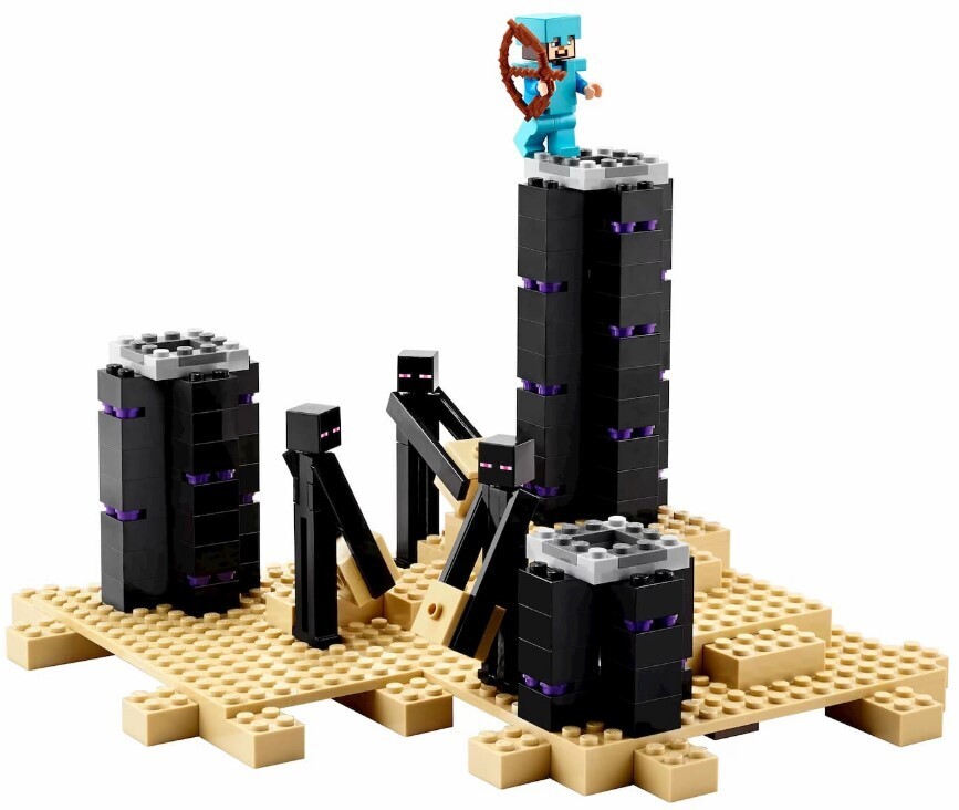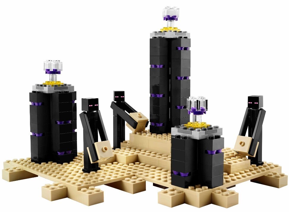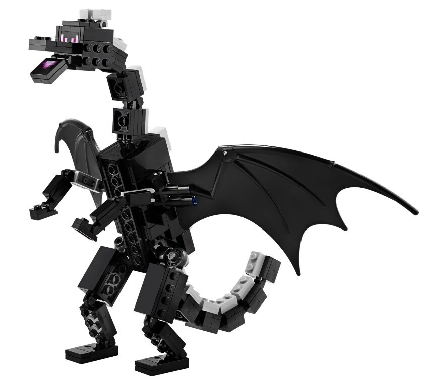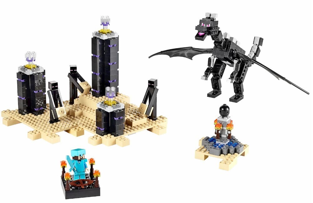 В набор Майнкрафт Дрякон Края входят 3 фигурки странников края, большая фигурка дракона Края и минифигурка Стива.