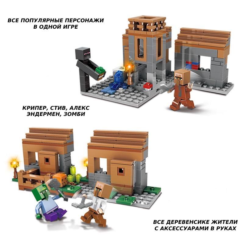 Конструктор Майнкрафт набор "Деревня с Мирными Жителями" 803 детали, 8 фигурок (игрушка, minecraft, конструктор для мальчиков, для девочек, большой набор)