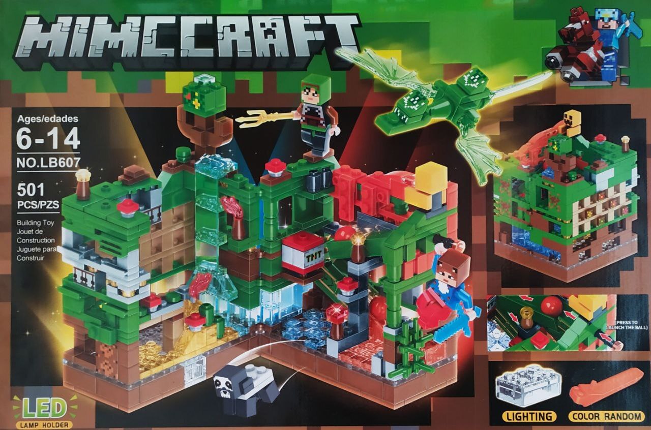 Конструктор Майнкрафт / набор Minecraf с Led подсветкой / 501 деталь / 3 фигурки (совместим с конструкторами лего)