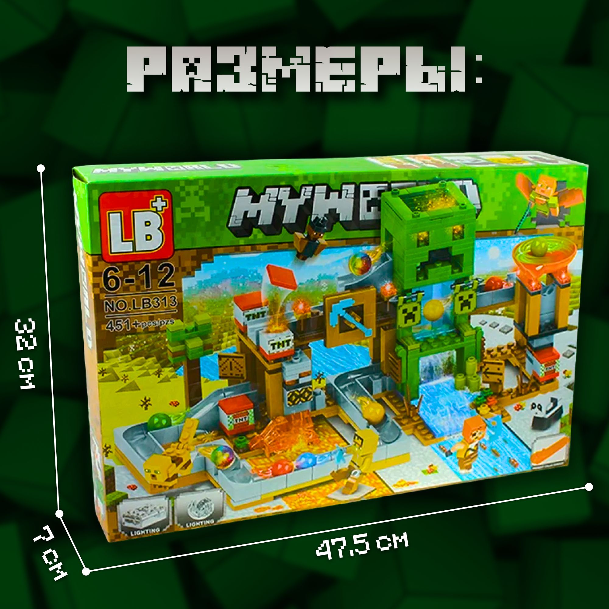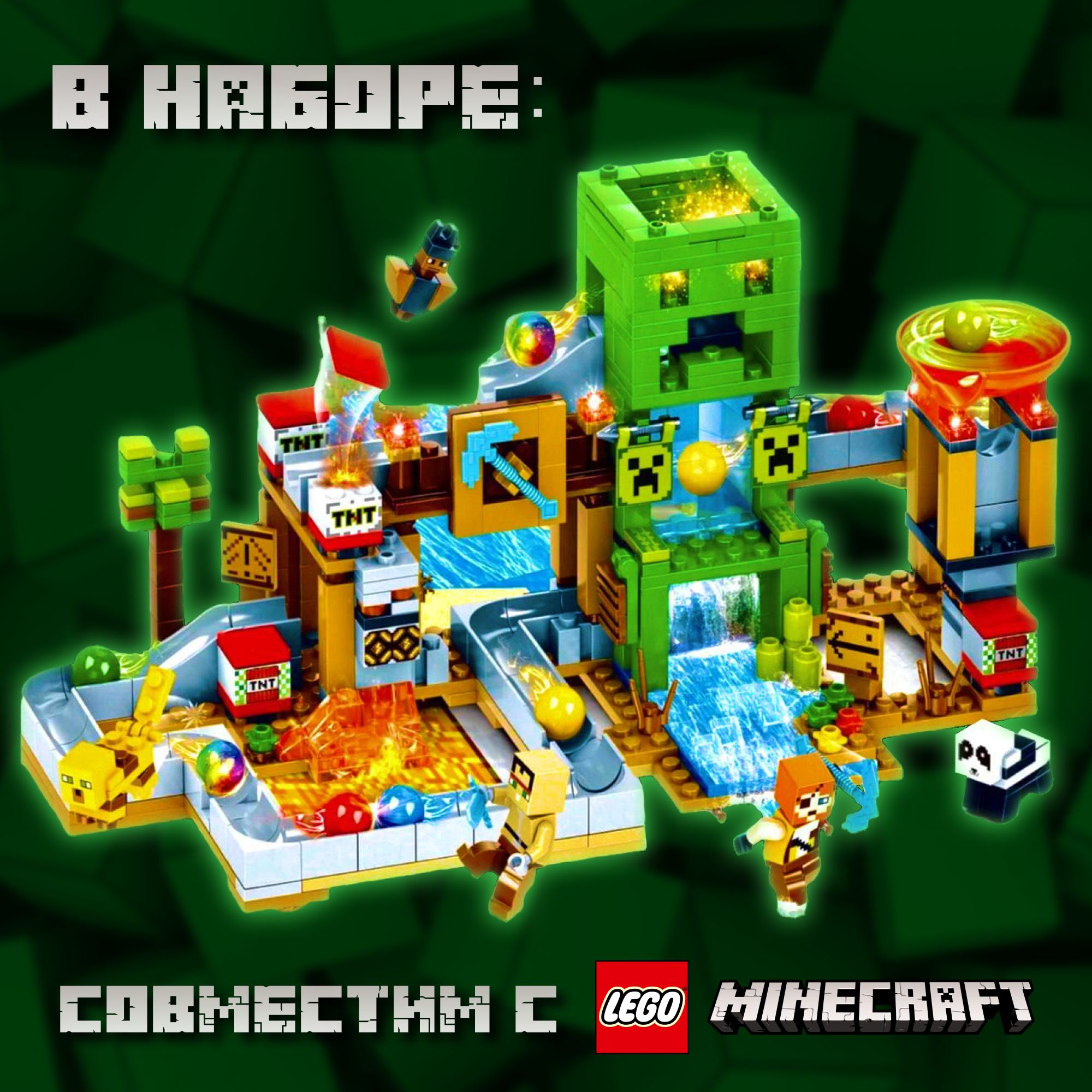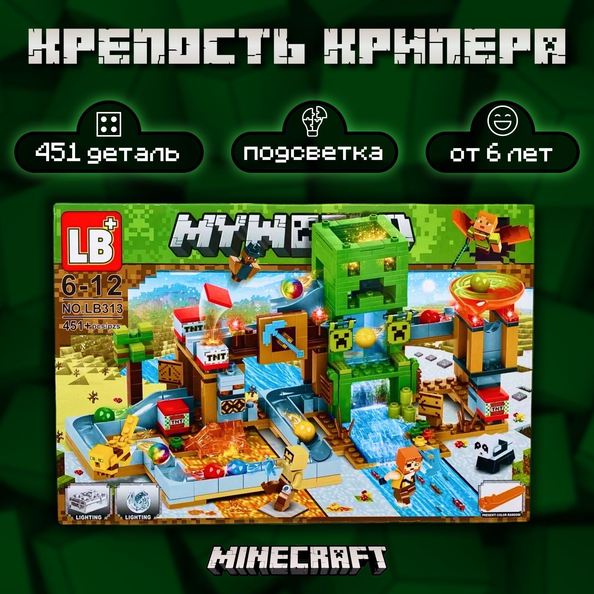 Описание: Конструктор майнкрафт «Шахта Крипера» 451 деталь зеленый с LED подсветкой - это совершенно новый конструктор для мальчиков по всемирно известной игре minecraft , my world!