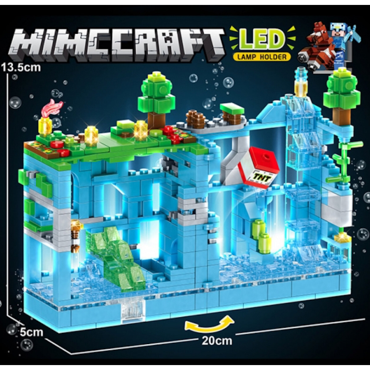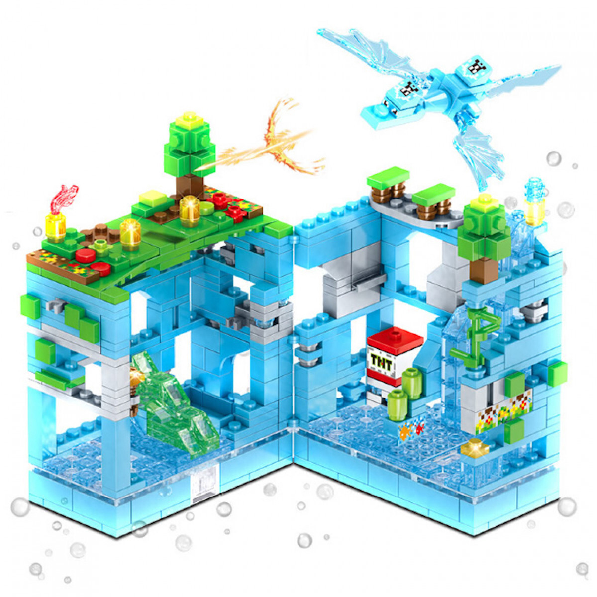 Конструктор Minecraft с подсветкой, 503 детали, Голубая крепость / майнкрафт