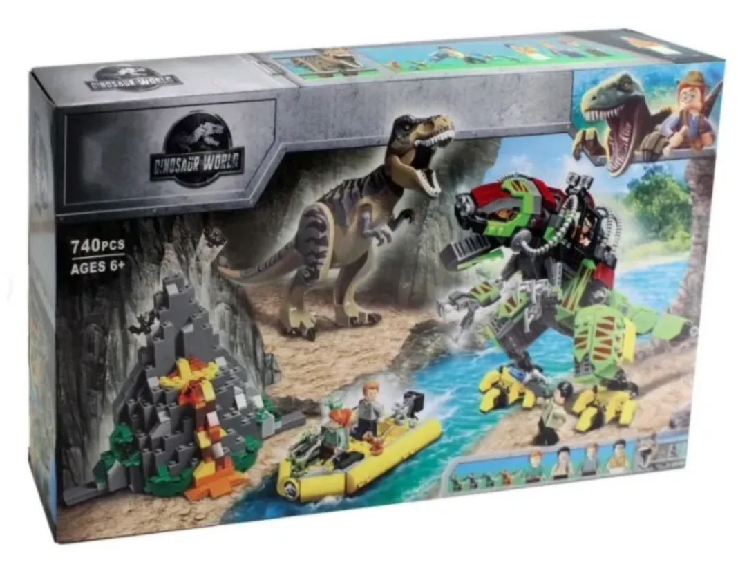 Описание: Бой тираннозавра и робота-динозавра 740 деталей