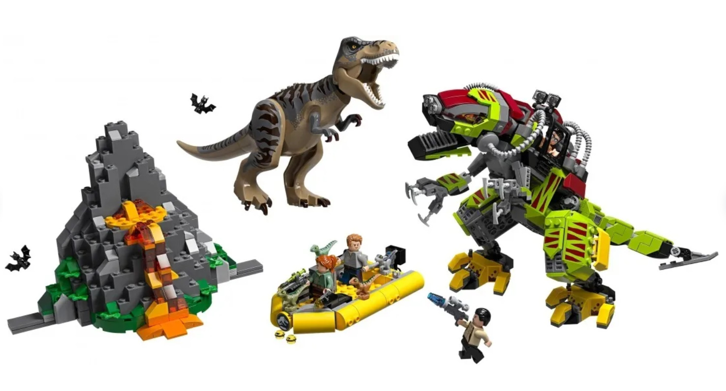 Конструктор Мир Динозавров / Мир Юрского Периода "Бой тираннозавра и робота-динозавра" / Jurassic World фигурки в наборе