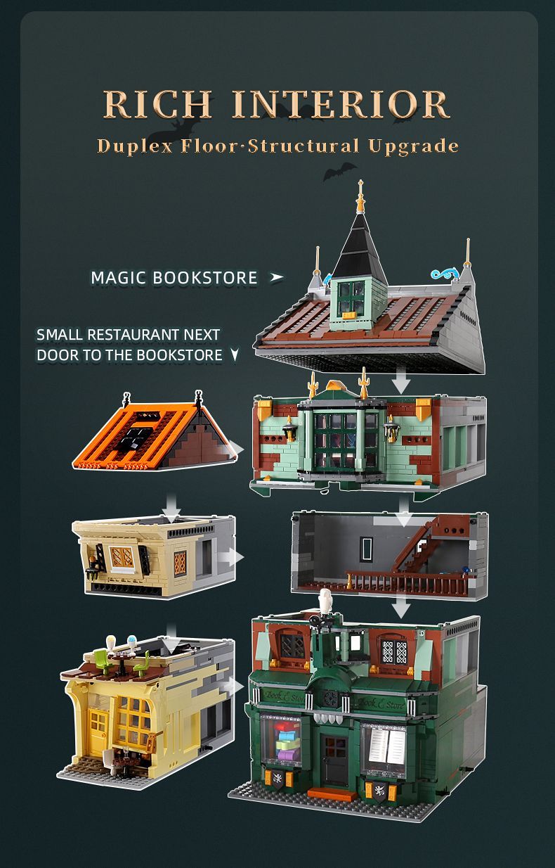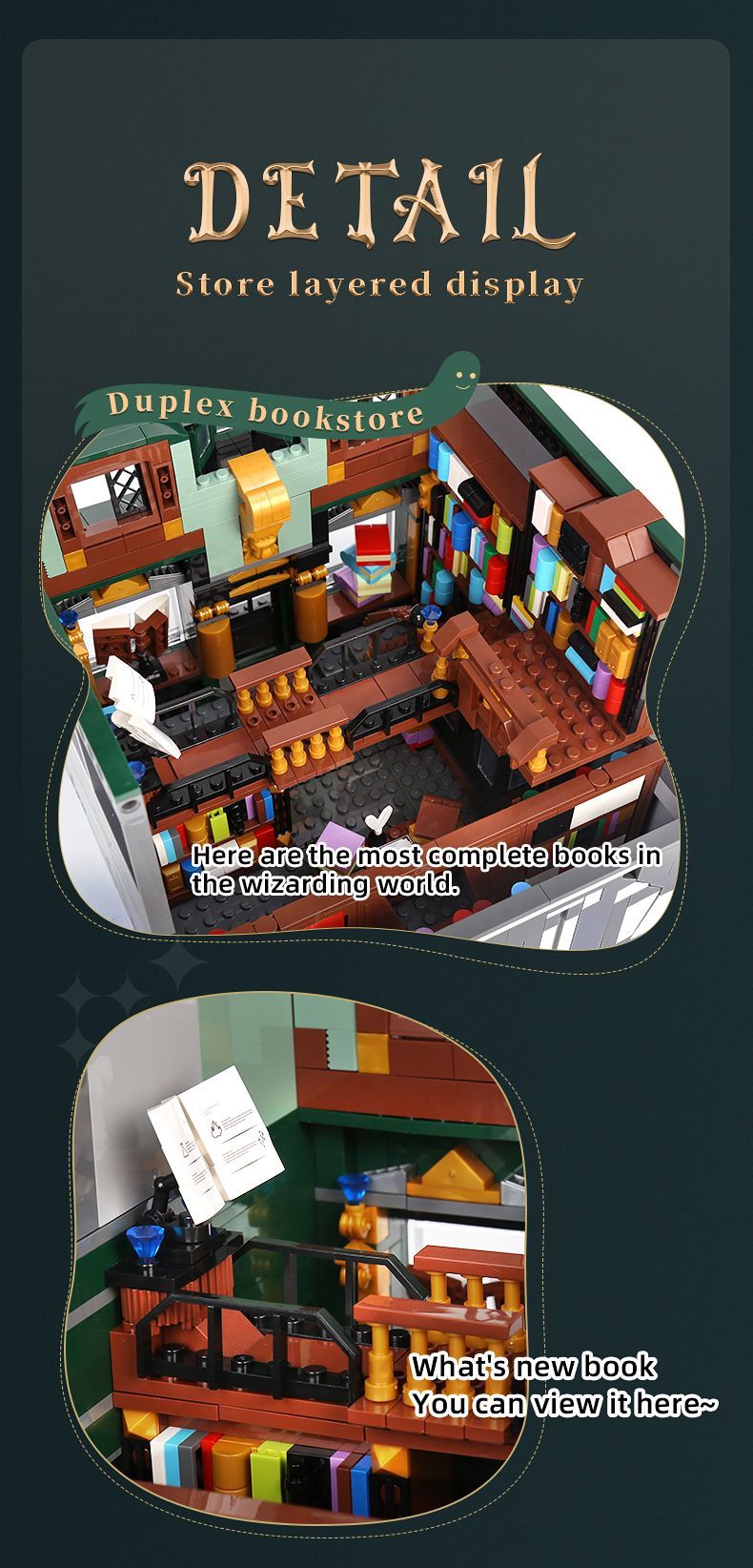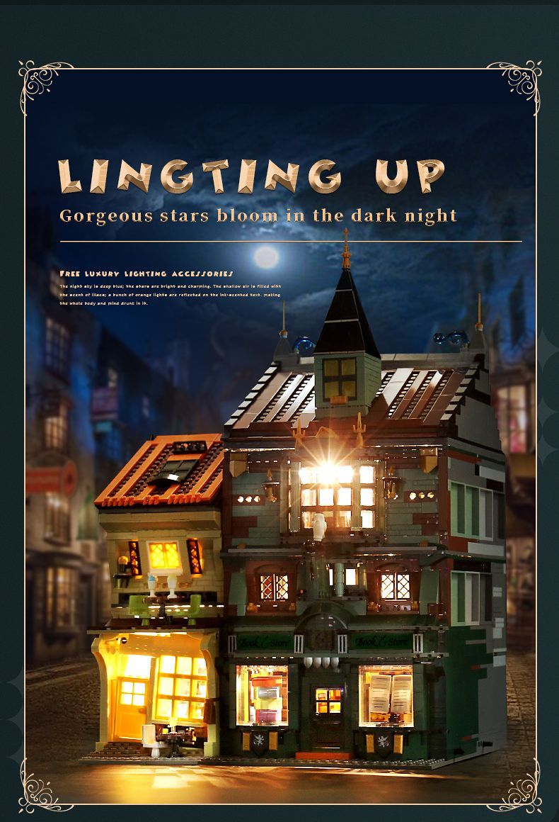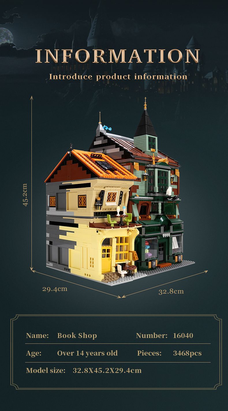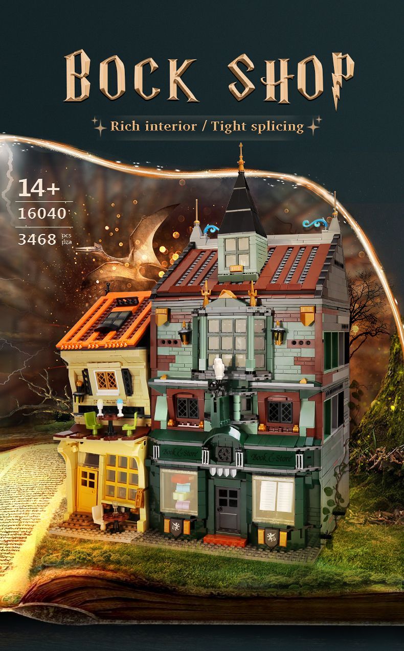 Конструктор MOULD KING 16040 Книжный магазин Гарри Поттера с подсветкой, 3468 деталей, Развивающий конструктор для мальчиков и девочек, Подарок на Новый Год