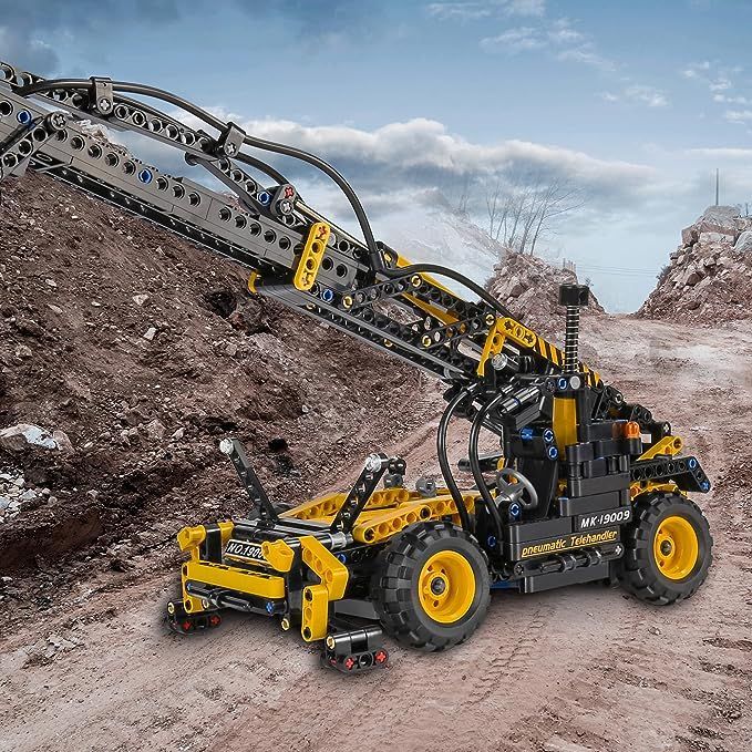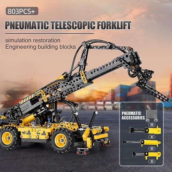 Описание: Пневматический вилочный погрузчик 19009Конструктор Mould King из 803 деталей, серии Technic, Строительная техника