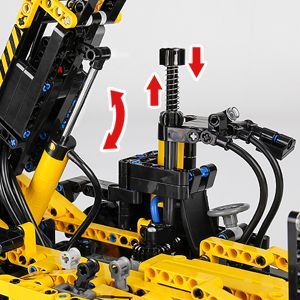 У спецтехники вращаются колёса, поэтому она может ехать.Технические параметрыЭта игрушка была собрана из 803 блоков. Это статическая версия без электродвигателя и литиевой батареи.