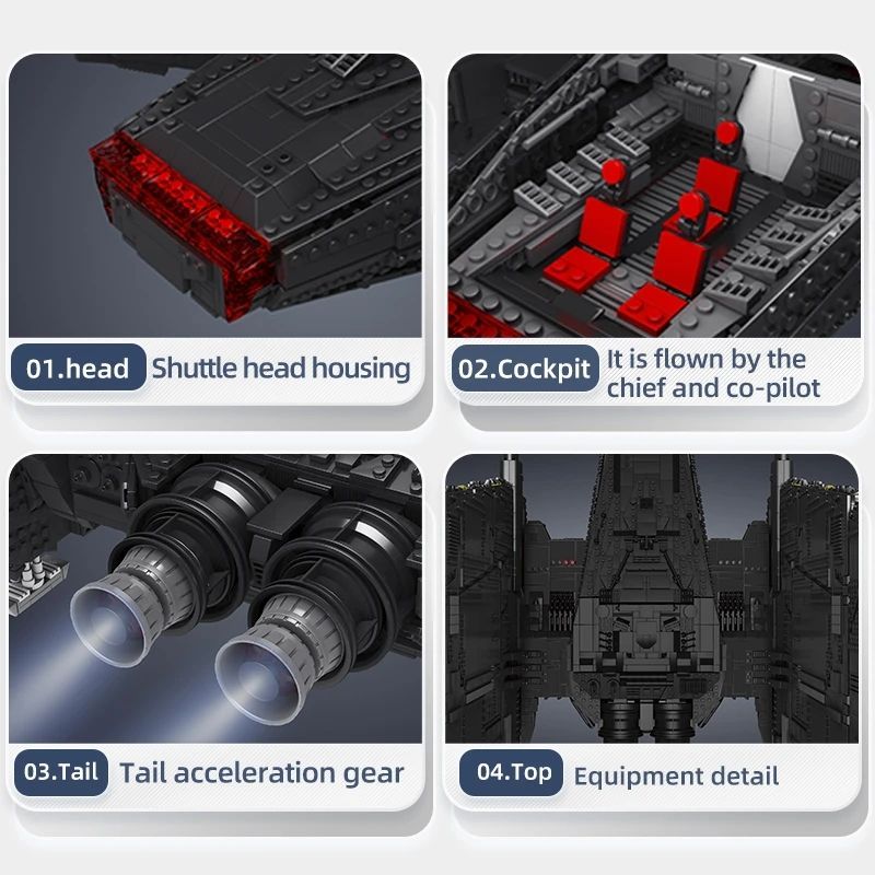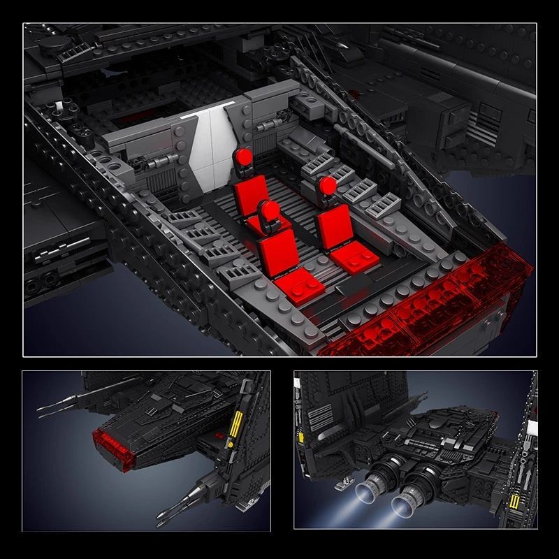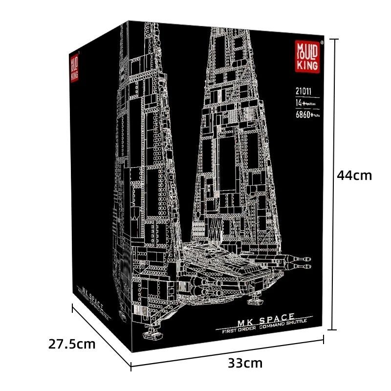 Описание: ЗаголовокКонструктор Mould King 21011 Шаттл Кайло Рена, 6860 деталей /MK SPACE принадлежит к разделу «Звездные Войны», к категории «Звездолеты».Разыграйте космические приключения с набором «Шаттл Кайло Рена». Сборная модель личного транспортного корабля Верховного Лидера из фильма «Звездные войны: Скайуокер. Восход» содержит множество деталей, которые приведут детей и коллекционеров в восторг: вращающийся правый двигатель для складывания крыльев при посадке и возможность уменьшить крылья, сложив их верхнюю часть. А еще на корабле есть открывающийся пандус, 2 пушки с пружинным механизмом и кабинка.