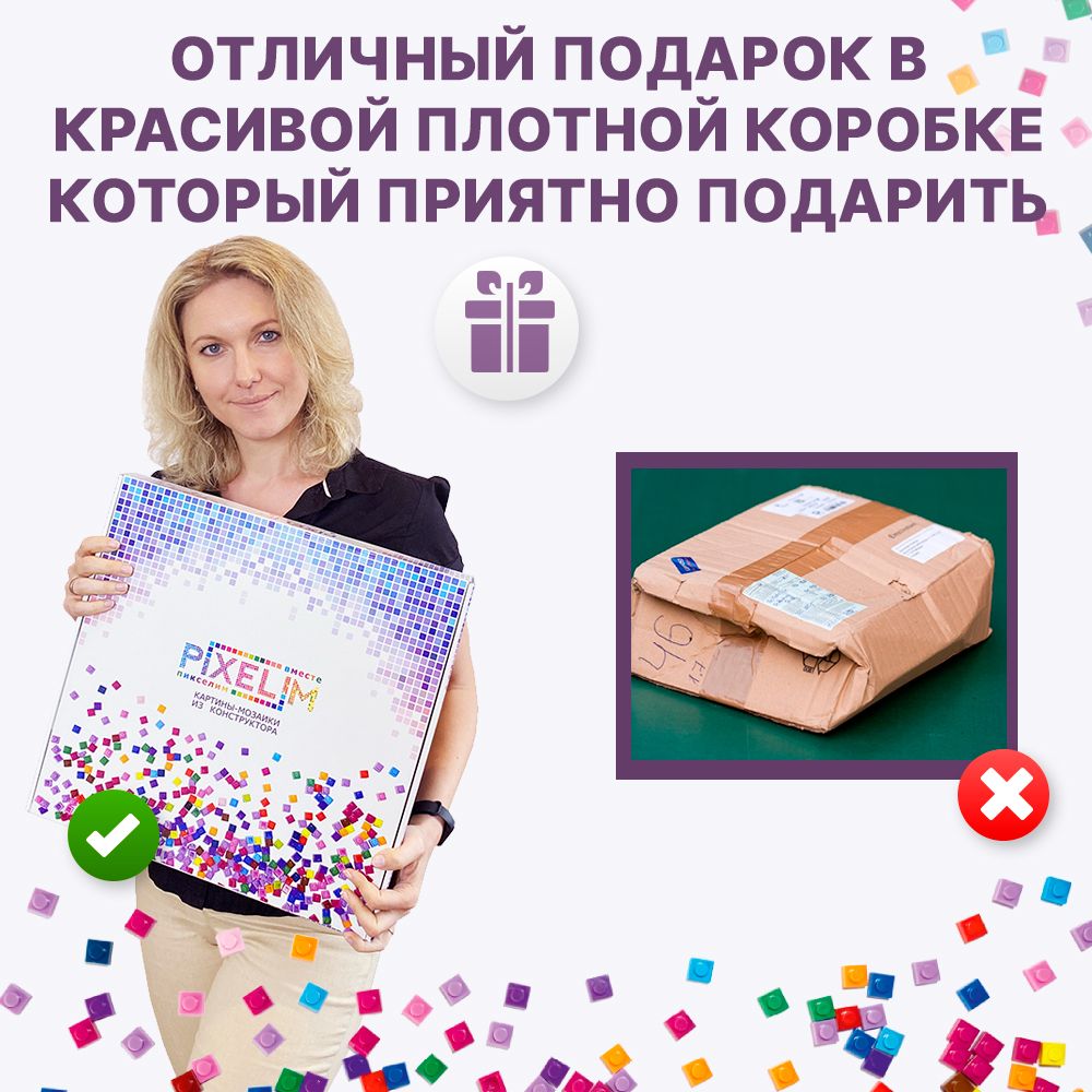 Картина-мозаика это отличный подарок в красивой плотной коробке, который приятно подарить.