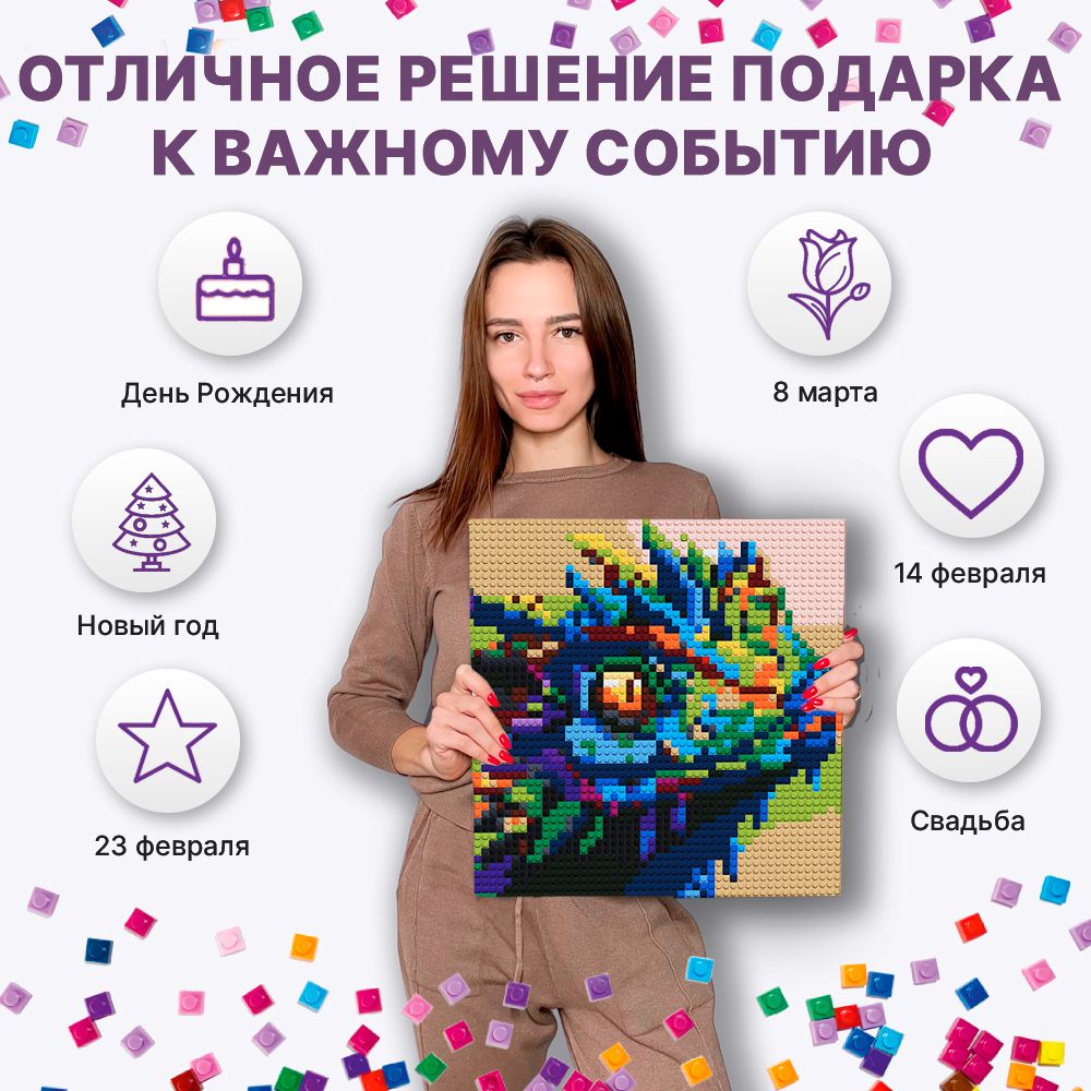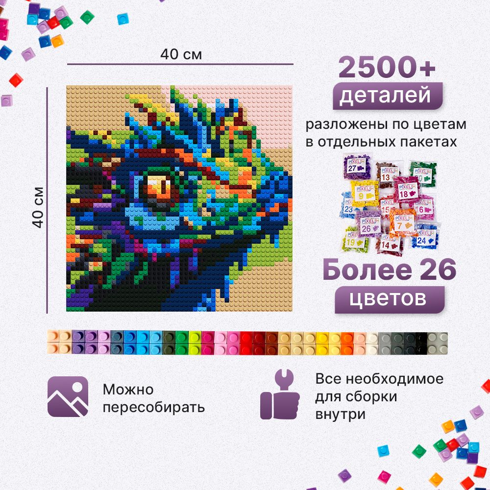 Конструктор-мозаика Радужная Ящерица PIXELIM 2500 деталей, 40х40см, 26 цветов, совместим с конструктором лего