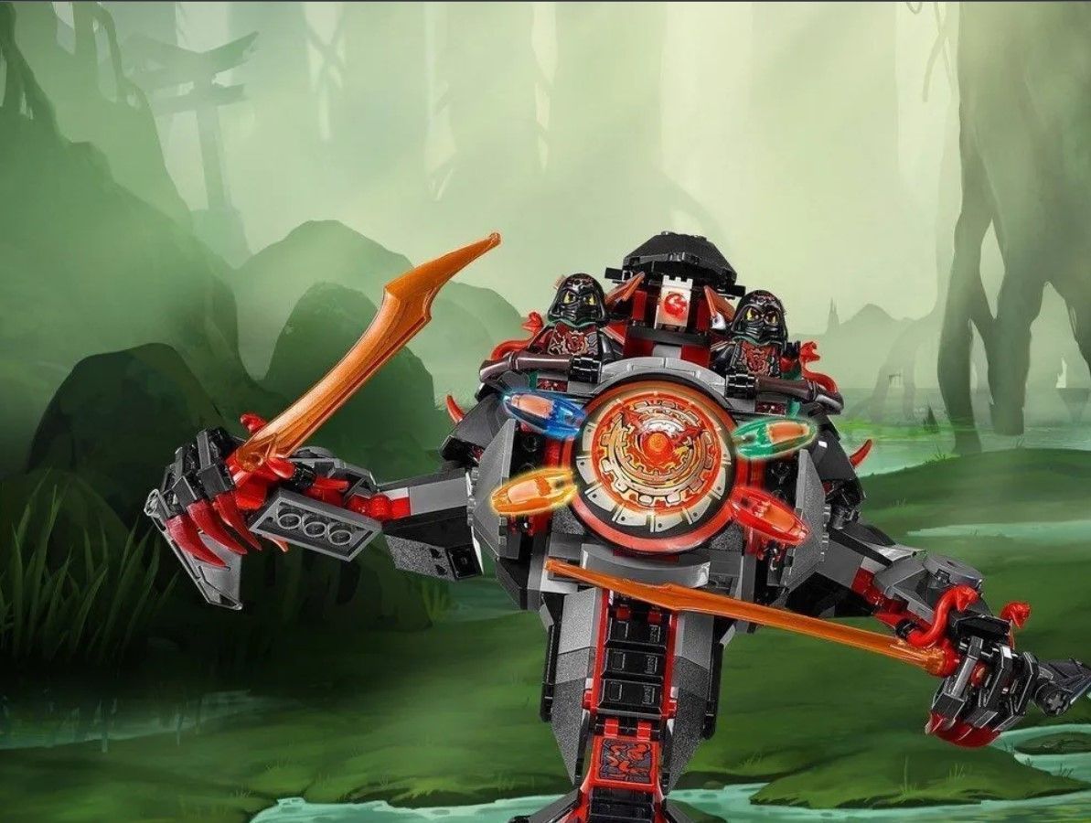 Описание: Высота змея 23 см!Форт охраняет Огромный Механический змей высотой 23 см. Его корпус оснащен подвижными элементами, поэтому змей может извиваться и принимать разные позы. В руках чудовища огненные мечи, а на плечах – посадочные места для Крукса и АкрониксаВ комплект также входят 6 фигурок с оружием: Сэнсэй Ву; Джей; Ллойд, Круск, Акроникс, командир Бланк. Отличный игровой набор, который восхитит всех поклонников НиндзягоПовелевай временем!Портал Времени, как вы догадались, тоже установлен на Механическом змее. Он представляет собой нагрудный щит, укрепленный 4 клинками. Синий клинок замедляет время, Красный – останавливает, Зеленый – ускоряет, Оранжевый – запускает время вспять.