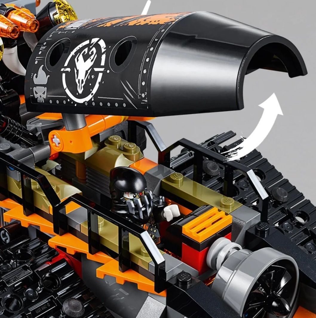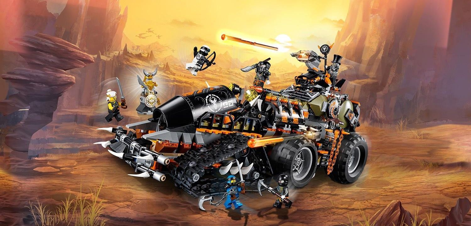 Описание: Стремительный странник.Конструктор Ninja Стремительный странник – боевая машина Охотников на драконов. Представленная игровым набором, включающим в свой состав 1179 элемент, она поможет Железному Барону и его приспешникам реализовать план захвата и пленения таких защитников Ниндзяго Сити, как Джей, Зейн и юный Ву.