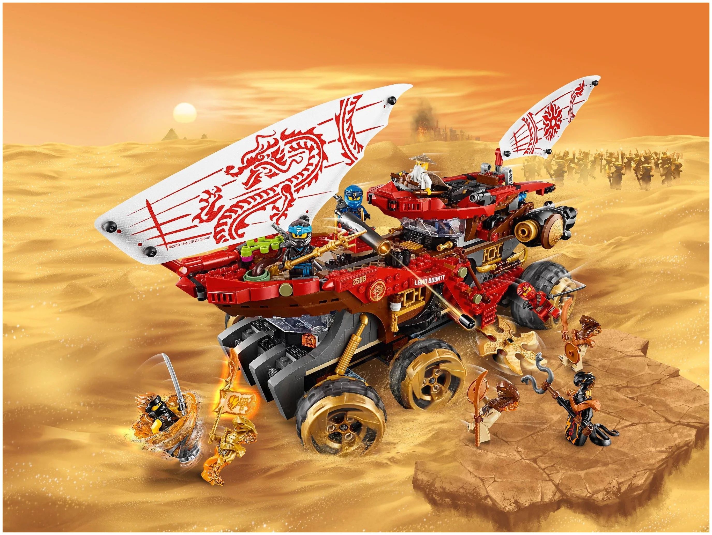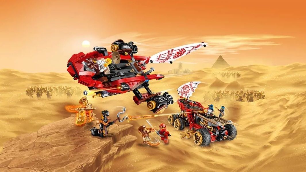Описание: Райский уголокПрисоединяйся к героям NINJAGO: Мастеру Ву, Каю, Джею, Ние и Коулу в боевых доспехах, обрались в суперсовременном бронированном мобильном командном центре — «Райский уголок»! Проведи грузовик ниндзя по барханам Пустыни злой судьбы и заставь его ножи-звёзды вращаться. Вступай в бой против Асфиры и Огненных гадюк — обстреляй их из пушек и пружинных шутеров. Отсоедини флаер и начинай атаку из пулемётов. Захвати оружие из «Райского уголка» и лети вперёд на квадроцикле. Ты должен победить Асфиру и забрать могущественный Свиток запретного Кружитцу!