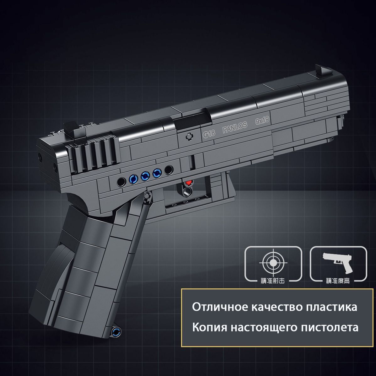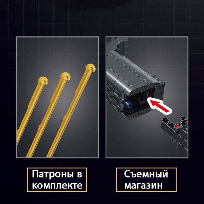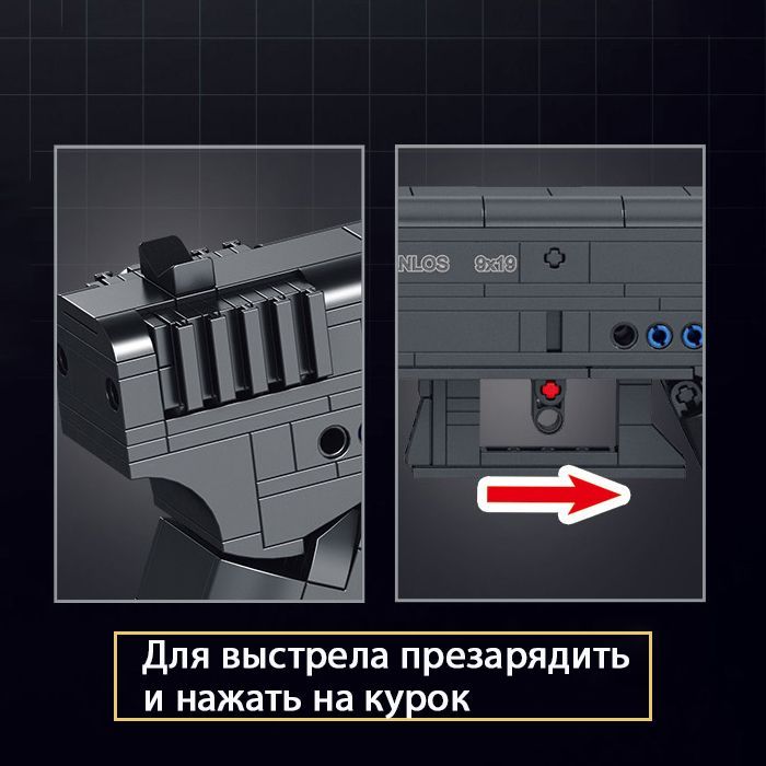 Описание: Конструктор оружие пистолет пневматический. В комплекте 336 деталей для сборки и инструкция. В составе 5 пластмассовых патронов из конструктора. Пистолет заряжается и стреляет пулями, просто помести патрон в пистолет и стреляй, в рукоять вставляется съемный магазин. Конструктор пистолет это уникальный конструктор для подростка или взрослого. Игрушка 2 в 1, сначала упорно и кропотливо собираешь конструктор, а затем используешь готовую модель как пистолет! Пистолет пластмассовый не оставит равнодушным ни одного подростка. Также конструктор пистолет идеально подойдет как подарок на день рожденья, 23 февраля или новый год! Пистолет детский большого размера, 23*14 см, имеет современный дизайн, выглядит реалистично. Конструктор техник развивает техническое мышление, креативность, упорство и целеустремленность.