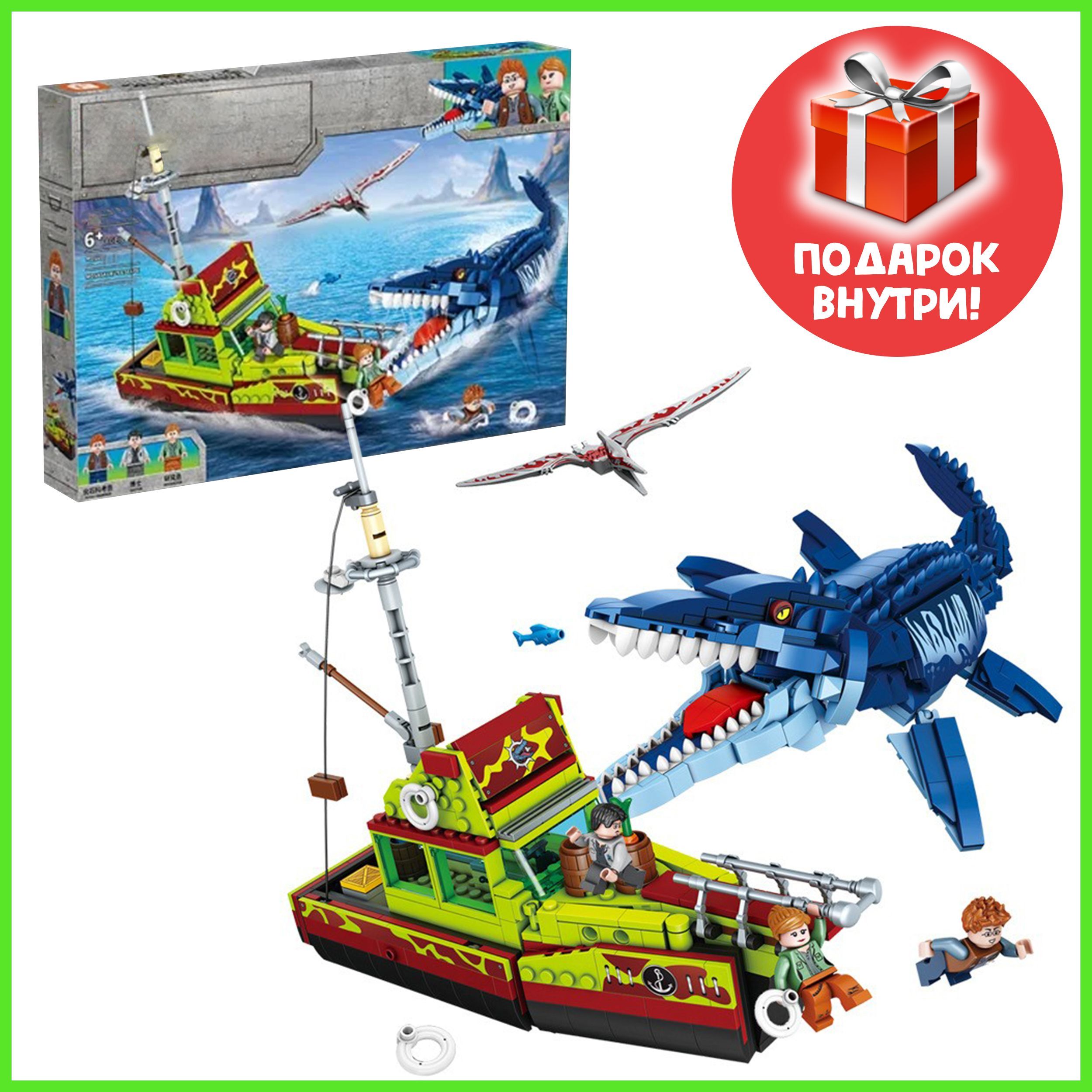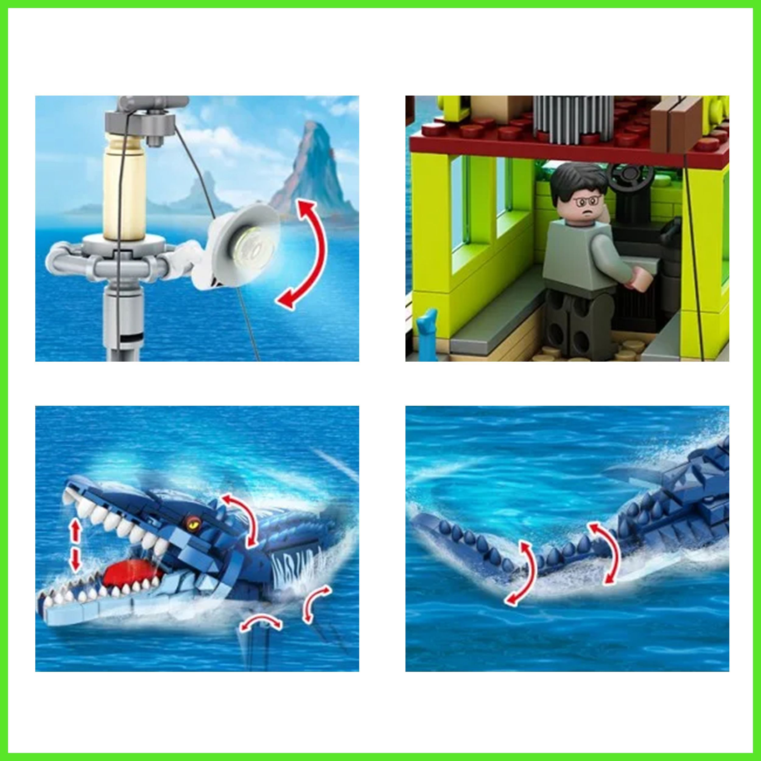 Описание: Острый сюжетВстреча с первым хищником не сулит ничего хорошего. Тиран морей и океанов действительно представляет большую опасность, поэтому исследователям рептилий желательно держаться от мозазавра на дистанции. Однако даже это ничего не гарантирует: морской монстр с такими мощными плавниками и хвостом способен без особого труда преодолевать большие расстояния на впечатляющей скоростиИсследуйте кабину Отправляйтесь в кабину вместе с капитаном и начните изучать все элементы судна.Меняйте положение фонаряФонарь крутится на шарнирах в разные стороны.Мощные челюсти с острейшими зубамиГолова и туловище могут менять положение, а челюсти мгновенно схлопываются, не оставляя шанса добычи.Движущиеся элементы хостаПодвижный хвост позволяет хищнику отлично маневрировать во время преследования добычи.