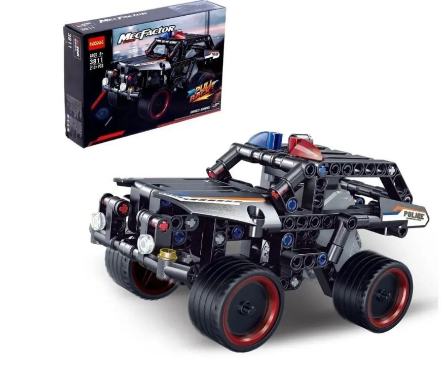 Описание: Конструктор Полицейская машина с инерционным механизмом / Совместим с лего/ машина для мальчиковКонструктор «Полицейский внедорожник с инерционным механизмом» - современный вариант полицейского авто. Представленный набором, включающим в свой состав 213 деталей, он идеально подойдет для погони и просто для повседневного патрулирования городаСобирается из черных пластиковых пластин-кирпичиков. Украшается буквенными надписями и контрастными вставками. Среди ключевых характеристик модели – мощная ходовка и усиленная подвеска формата «Pull back». Чтобы ее завести и отправить на оперативное задание, достаточно слегка оттянуть полицейскую машинку назадВ передней части находится усиленный бампер с радиаторной решеткой, фарами и проблесковыми маячками. За ним располагается просторная кабина управления. Багажник у сборной модели конструктора как таковой отсутствует.
