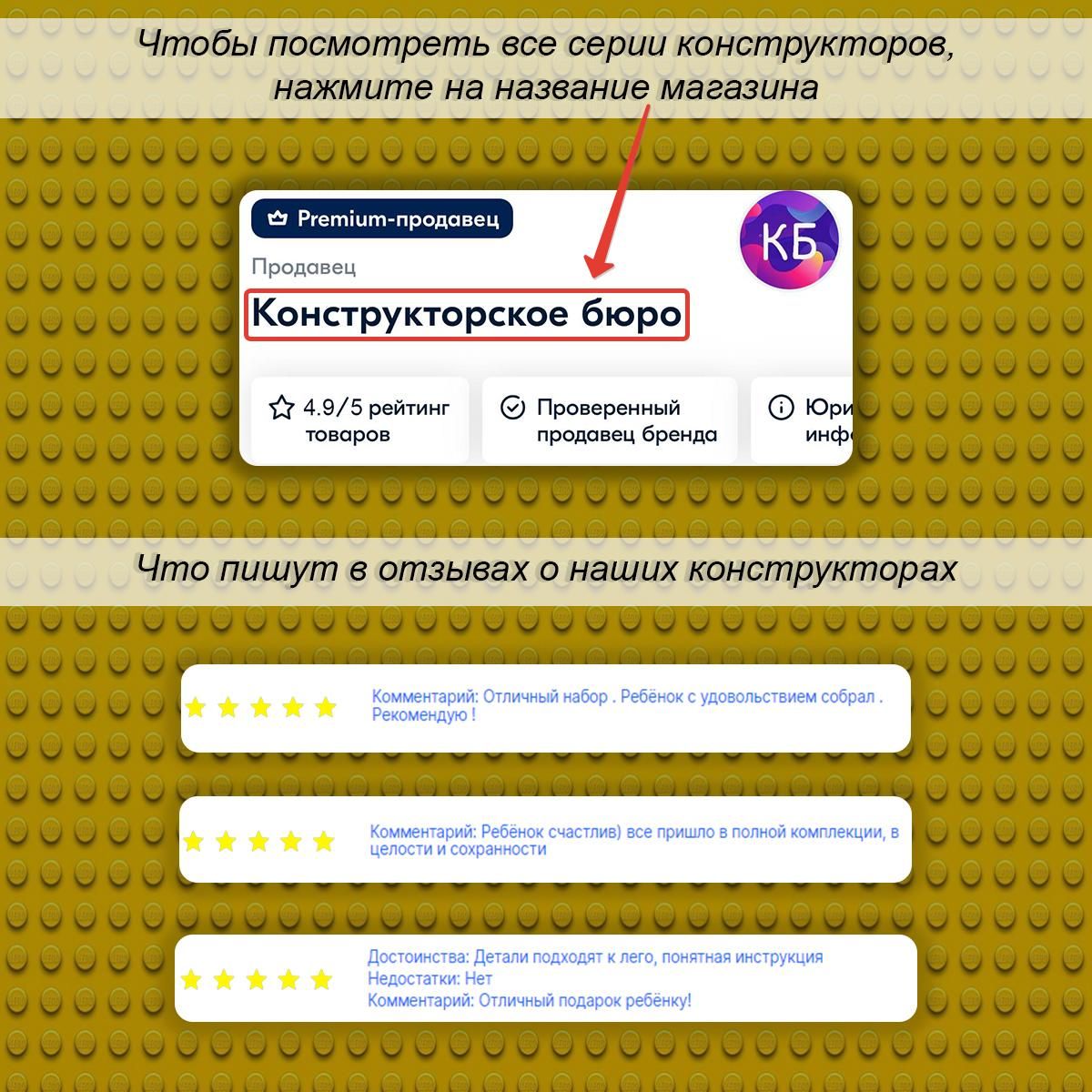 Почему стоит выбрать наши конструкторы?Понятная инструкцияПонятная инструкцияРебёнок без труда соберёт конструктор по пошаговой инструкции. От себя рекомендуем отсортировать детали по типу и цвету.Качественные деталиКачественные деталиЯркие детали не имеют заусенцев и неровностей, как у других производителей низкого качества. Детали отлично скрепляются друг с другом и прочно держатся в собранной конструкции.СовместимостьСовместимостьНаши конструкторы полностью совместимы с известными брендами.Забота о покупателяхЗабота о покупателяхМы дорожим репутацией и в случае обнаружения недостающей детали, пришлём Вам её.?ДОПОЛНИТЕЛЬНАЯ СКИДКА ДЛЯ РЕШИТЕЛЬНЫХНе откладывайте на потом!
