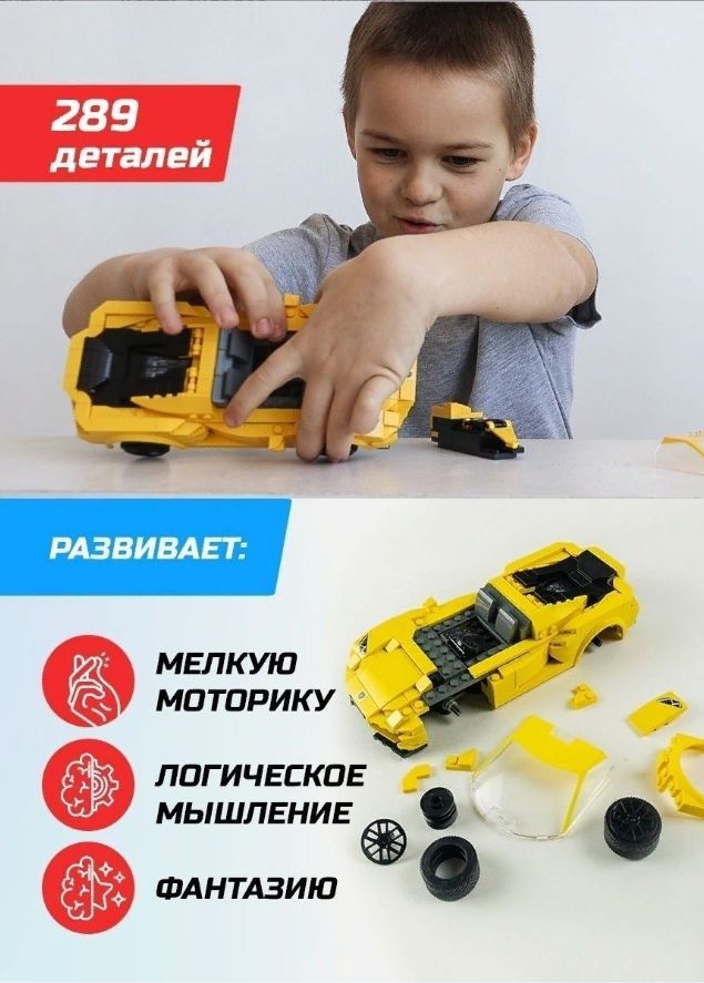 Пластиковый конструктор развивает мелкую моторику рук, логическое мышление и фантазию, и объединит взрослых и детей за подвижной игрой в гонки!