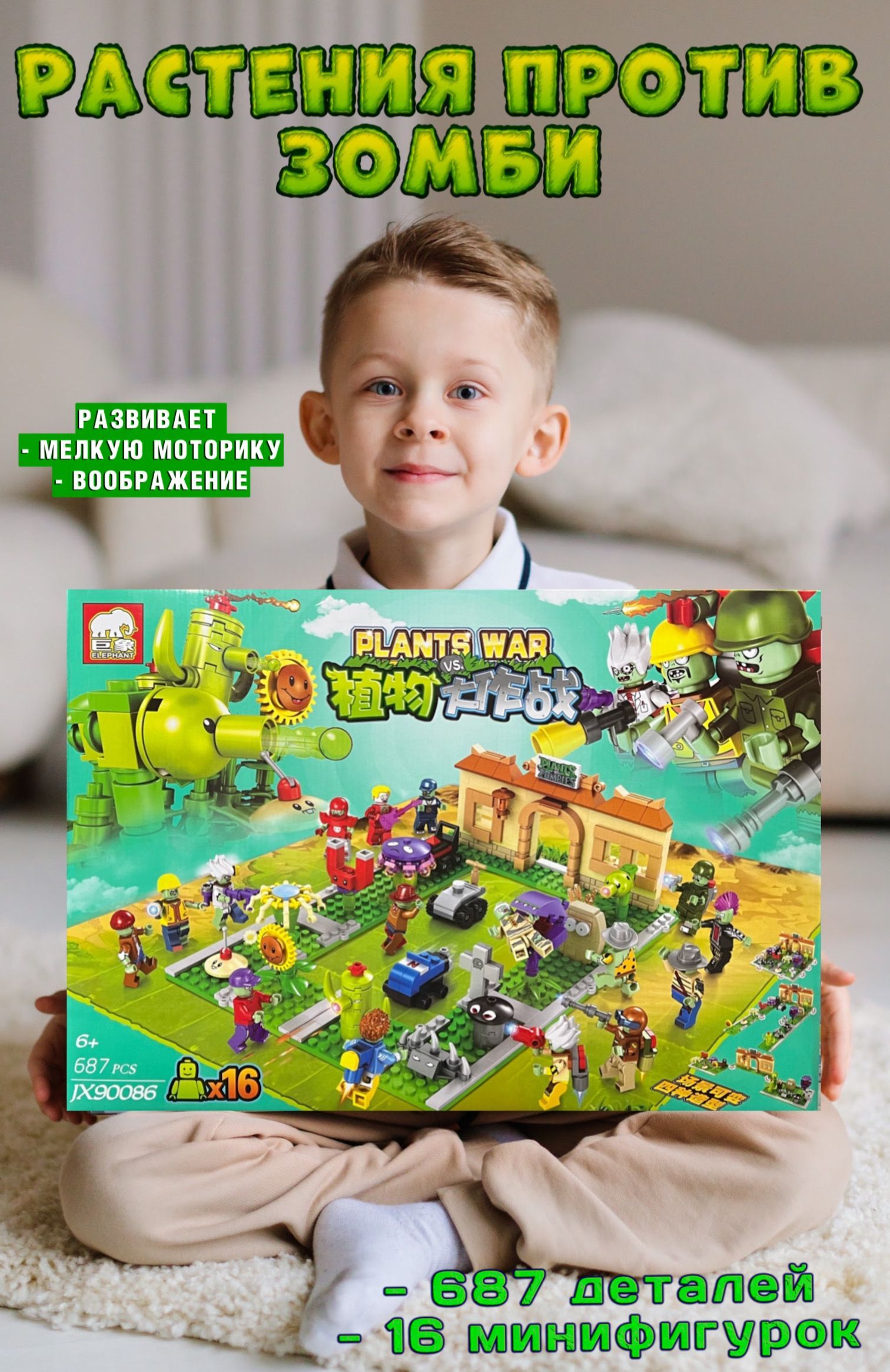 Описание: Этот яркий детский конструктор растения против зомби придётся по душе всем любителям занимательной сборки конструкторов plants vs zombies. А это значит, что конструктор для мальчиков и конструктора для девочек не оставит равнодушным никого. В комплекте конструктора растения есть дополнительные элементы и фигурки. Пластиковый конструктор зомби имеет красивую подарочную упаковку. Каждая деталь тщательно проработана, что делает игру реалистичнее. Конструктор растения против зомби оставит у вас самые лучшие впечатления. В процессе игры в конструктор для мальчиков ребёнок сам придумывает истории. Развивается воображение, навыки конструирования, мышление и мелкая моторика. Вложите в развитие ребёнка силы и время в первые годы жизни и получите в будущем великого изобретается! Детский конструктор растения против зомби – лучший подарок ребёнку. Яркая подарочная упаковка может стать отличным фоном для будущих гонок и сражений. Конструктор превращает развитие детей в увлекательное занятие. Смело покупайте этот детский конструктор п и наслаждайтесь игрой вместе со своим ребёнком! Данный конструктор растения против зомби является монобрендом. Детский конструктор для мальчиков совместим со всеми известными брендами конструкторов. Наш большой ассортимент детских конструкторов позволяет выбрать модель, подходящую для вашего ребёнка. Конструктор изготовлен из высококачественного пластика и полностью соответствуем стандартам качества. Полностью безопасен для детей.
