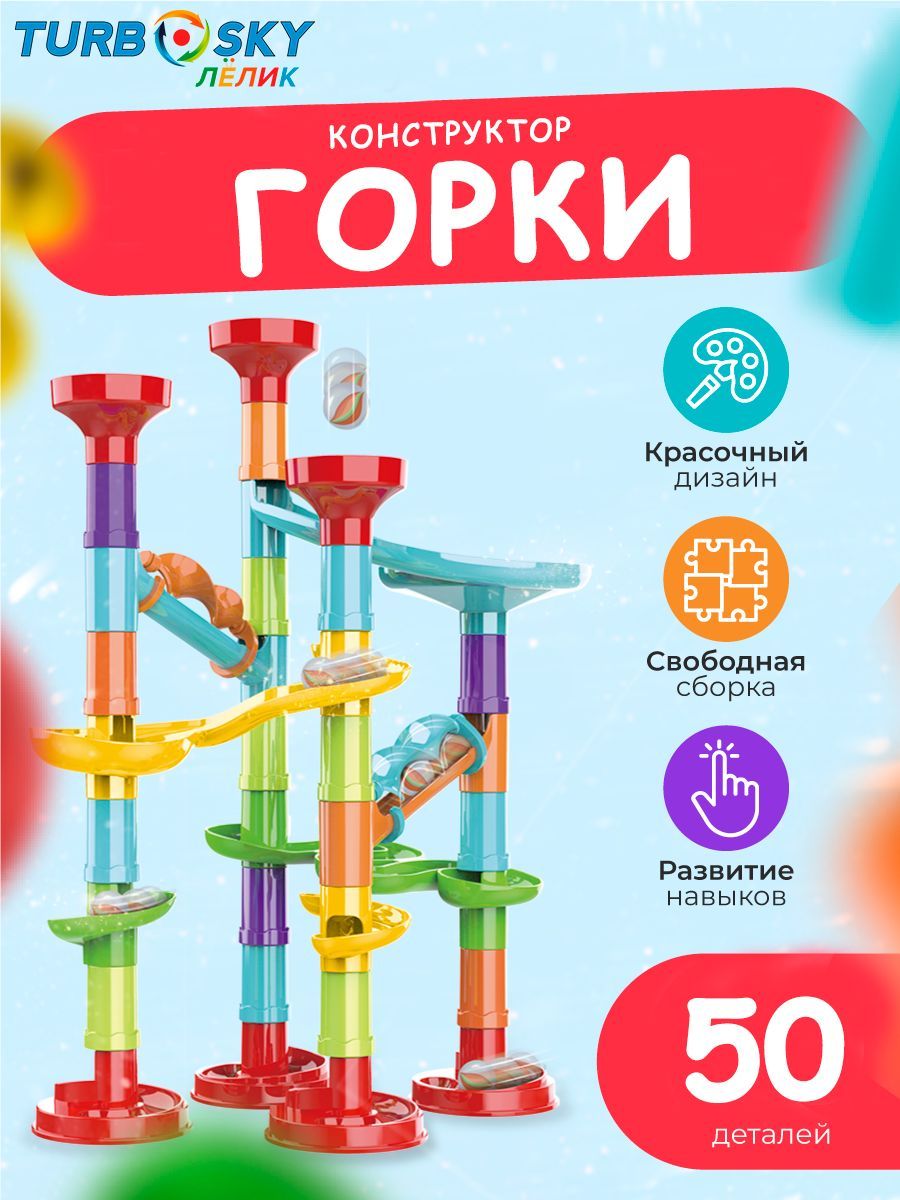 Конструктор развивающий детский 50 элементов TURBOSKY Лёлик Горки, игрушка для детей / подарок мальчику и подарок девочке / Набор игрушек